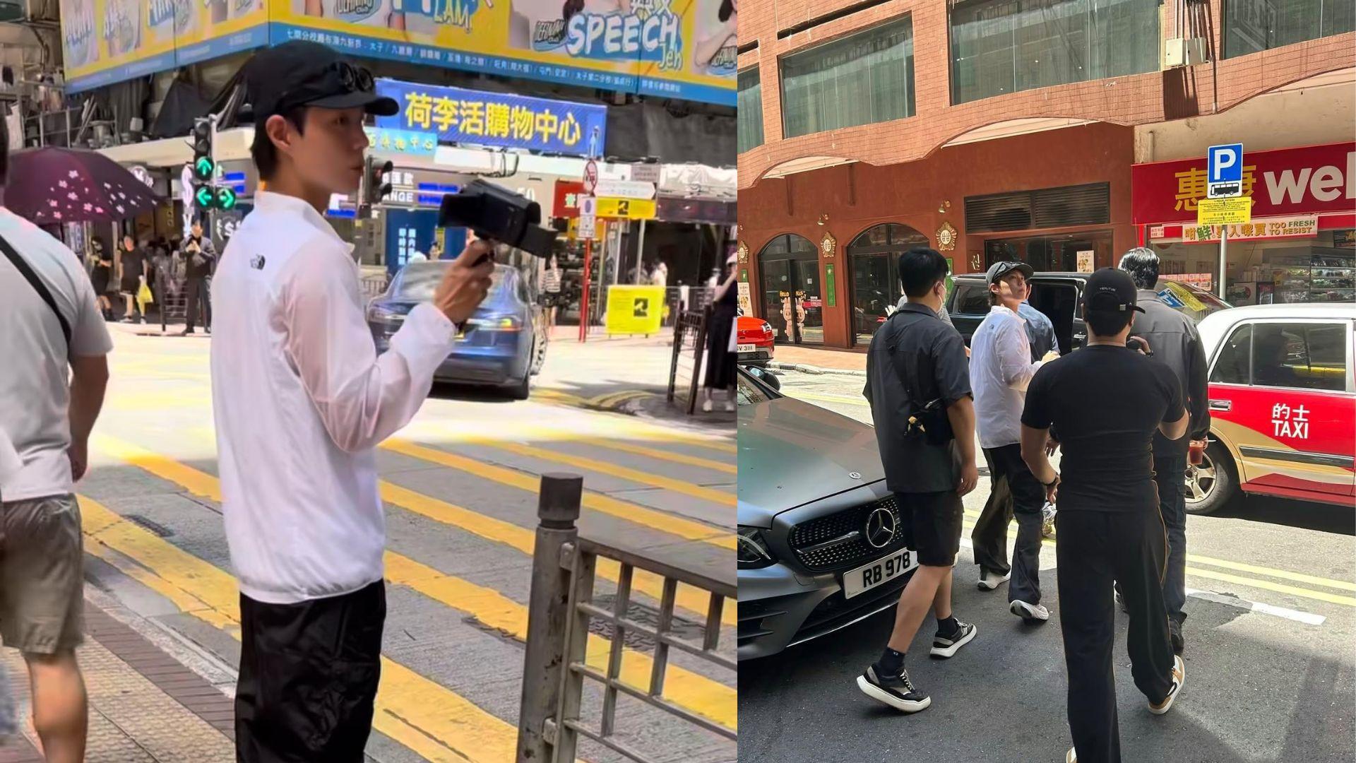 朴寶劍今日中午快閃旺角,有粉絲在街頭捕獲男神大呼驚喜。 (網上圖片)