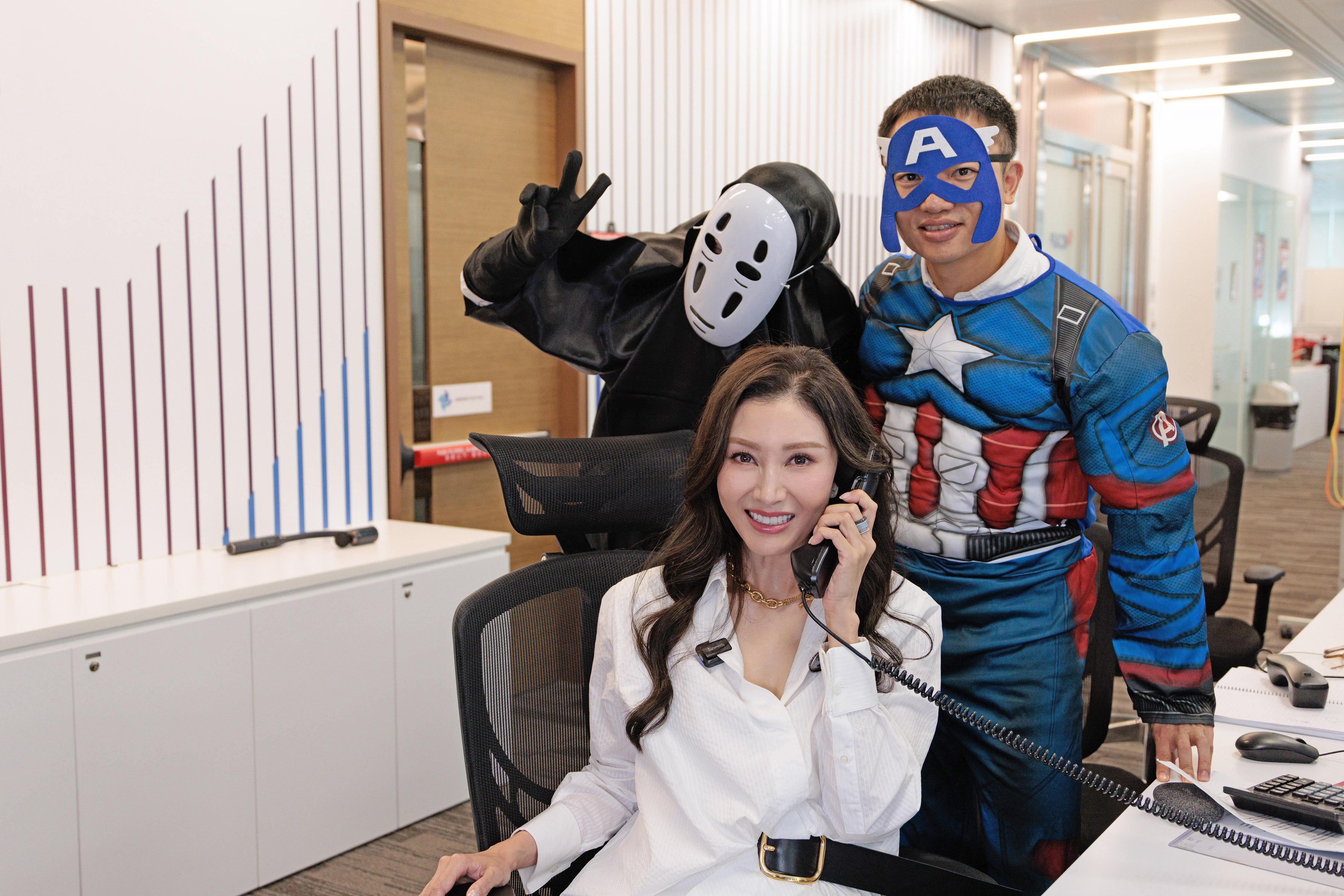 此外,今年的慈善活動主題為動漫,許多員工都打扮成了卡通人物,別具一格,例如美國隊長、超級馬里奧、千與千尋和龍珠等。當同事們問及Michele為何沒有特別的造型時,她拿起一隻可愛的iPANDAS熊貓毛公仔表示:「我特別選擇了靈感來自熊貓的黑白色裝扮。現在香港有六隻熊貓,全城掀起一陣熊貓熱潮,我自己也很熱衷,期待有機會和家人一起去看熊貓家姐和細佬,真是太期待了!」