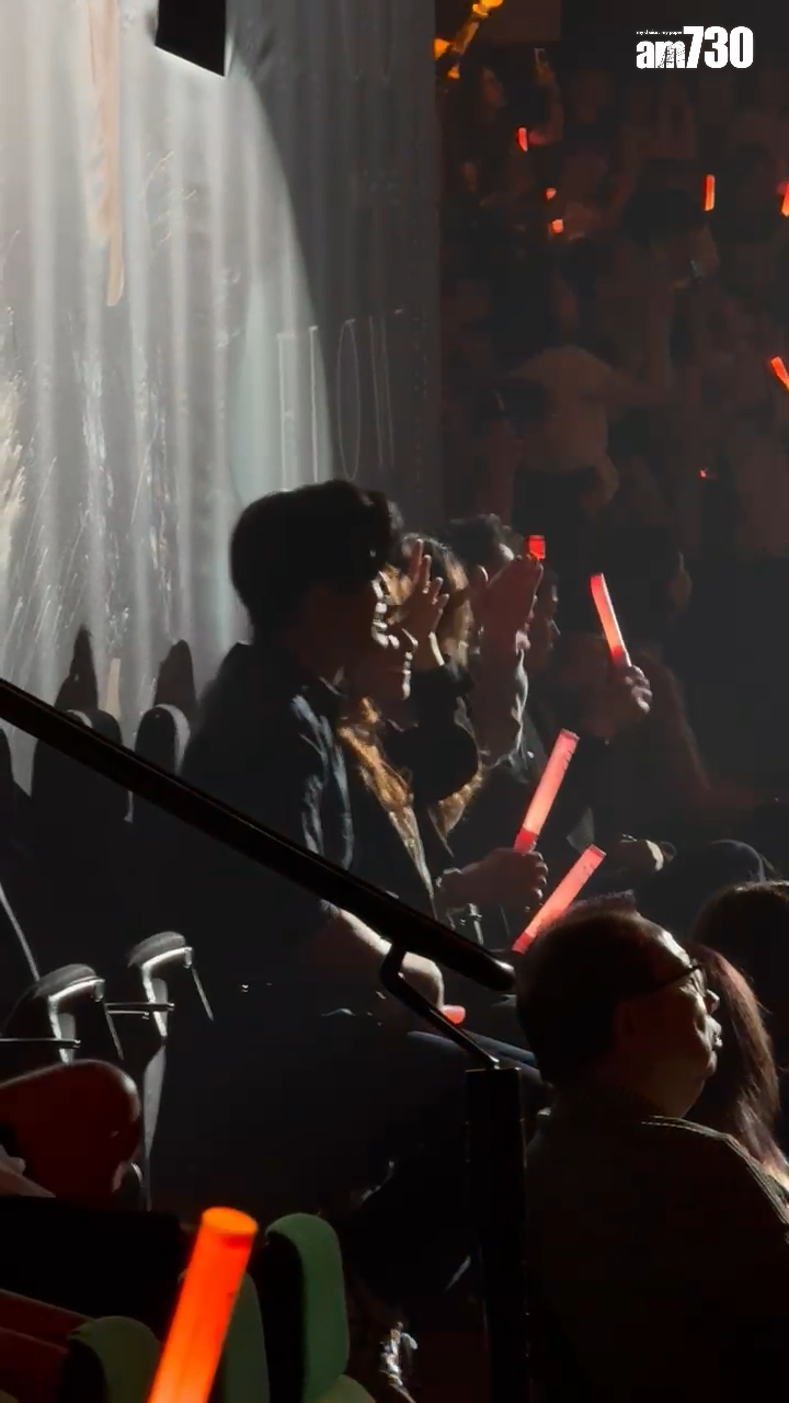 伍允龍與李蔓瑩一齊入場睇林峯開騷,全程有講有笑。(娛樂組攝)