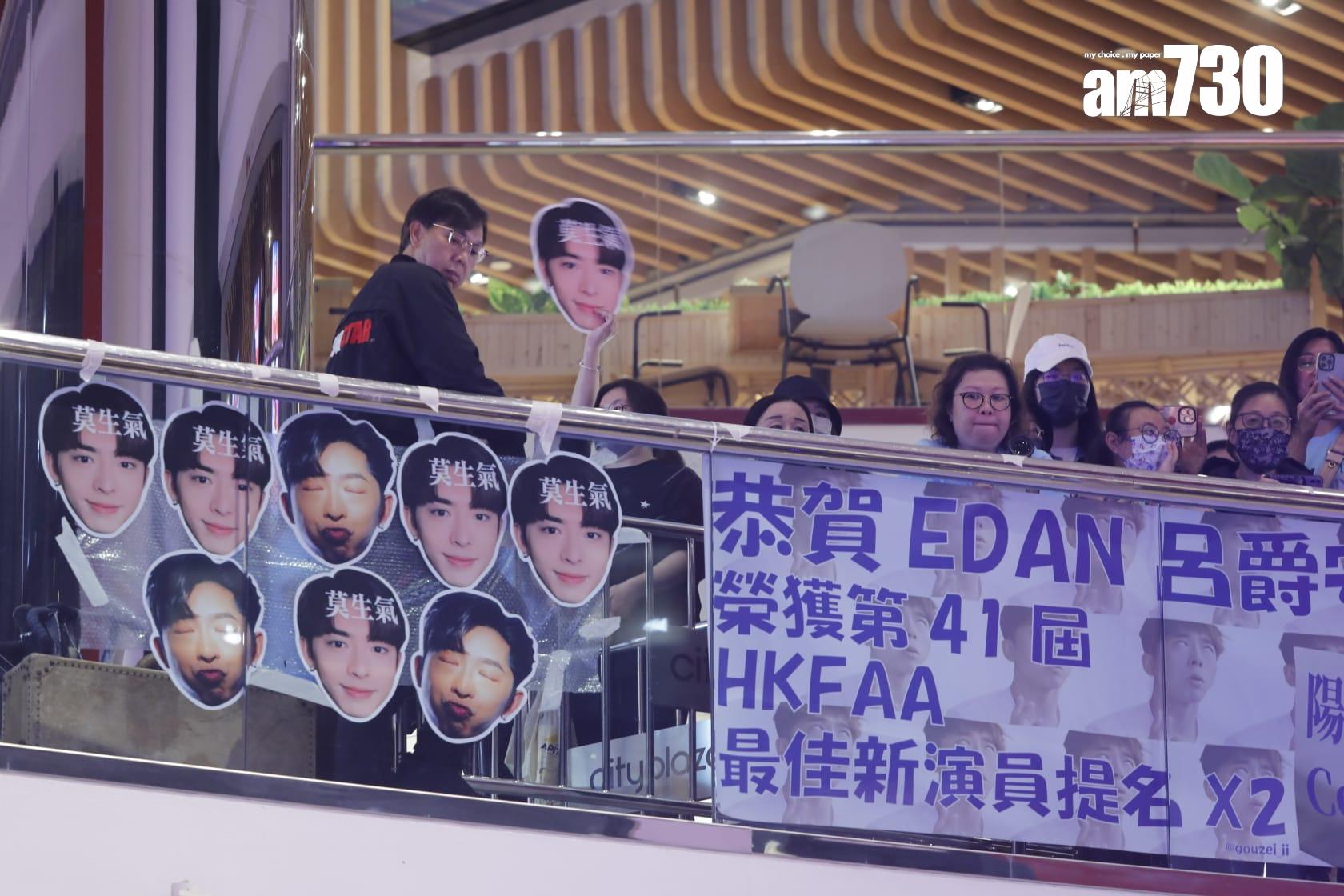 Edan的粉絲今日到場時,因應他早前在IG開live出現「莫生氣」,而炮製了不同應援到場。Edan見到之後亦忍不住笑了出來。