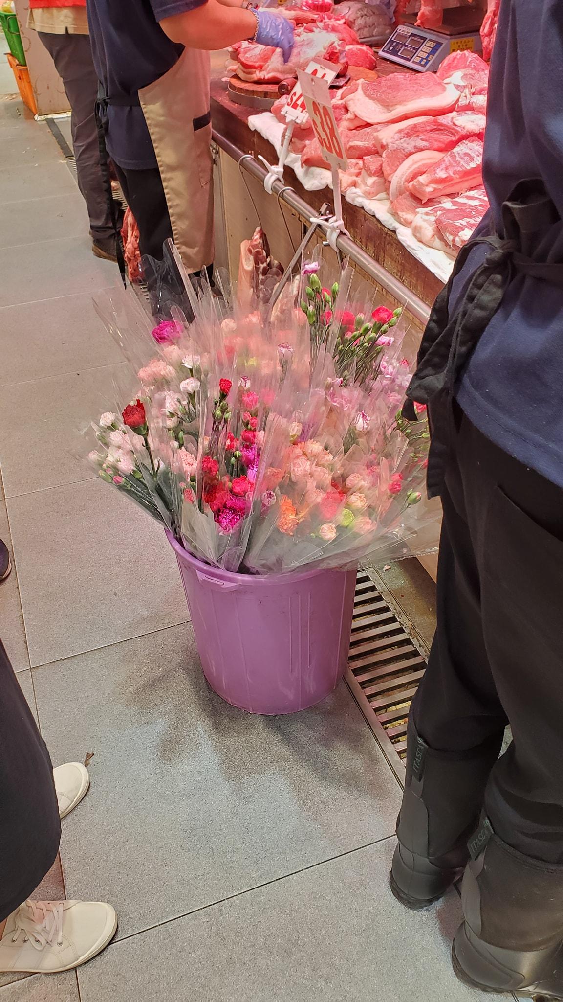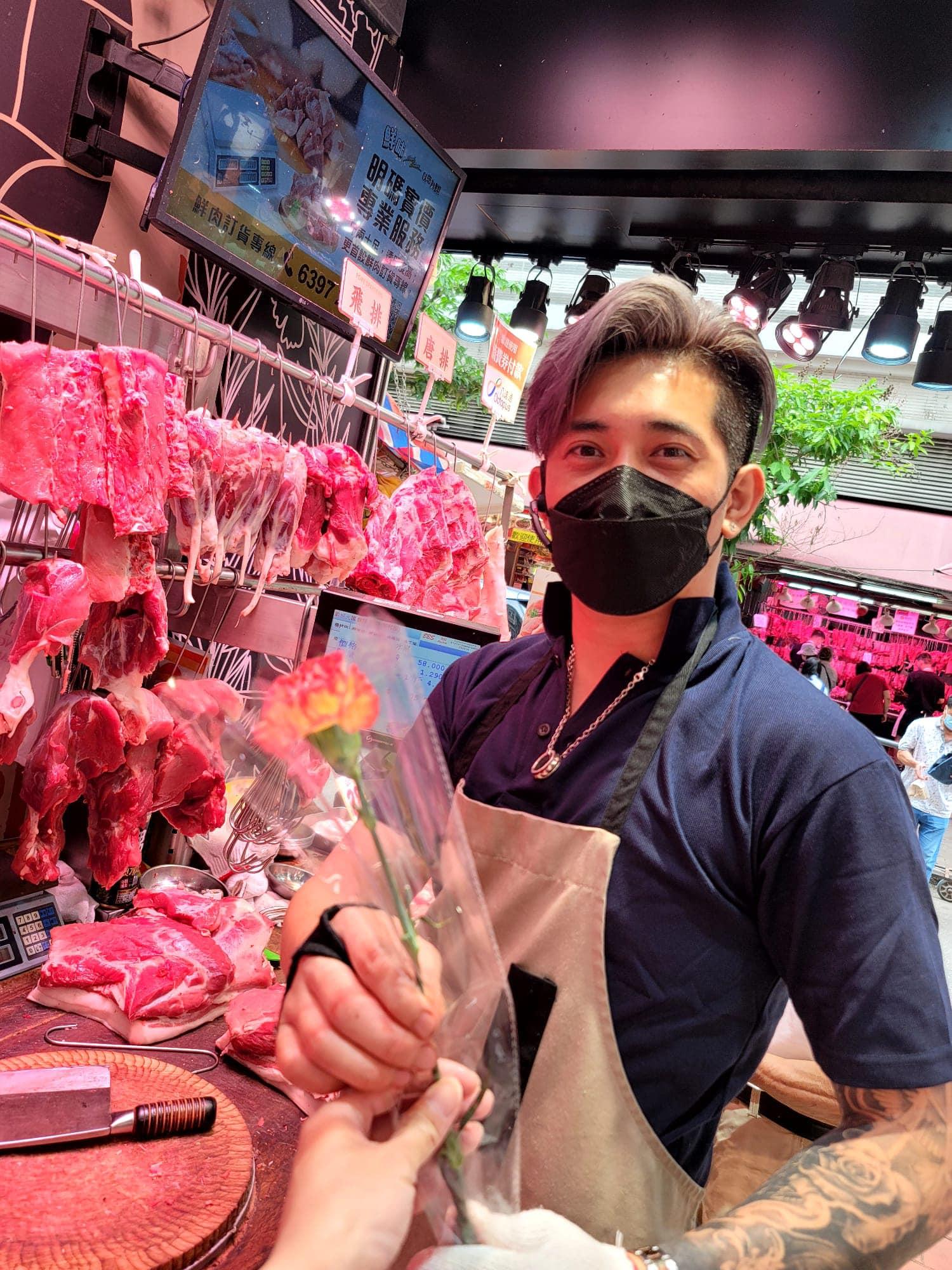 荃灣豬肉檔AK出冧招,買了大量康乃馨送給師奶。