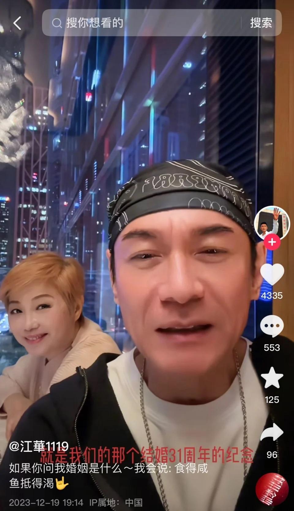 最近佢又喺抖音分享日常生活片段,仲回覆網民留言大方自爆自己有地中海。