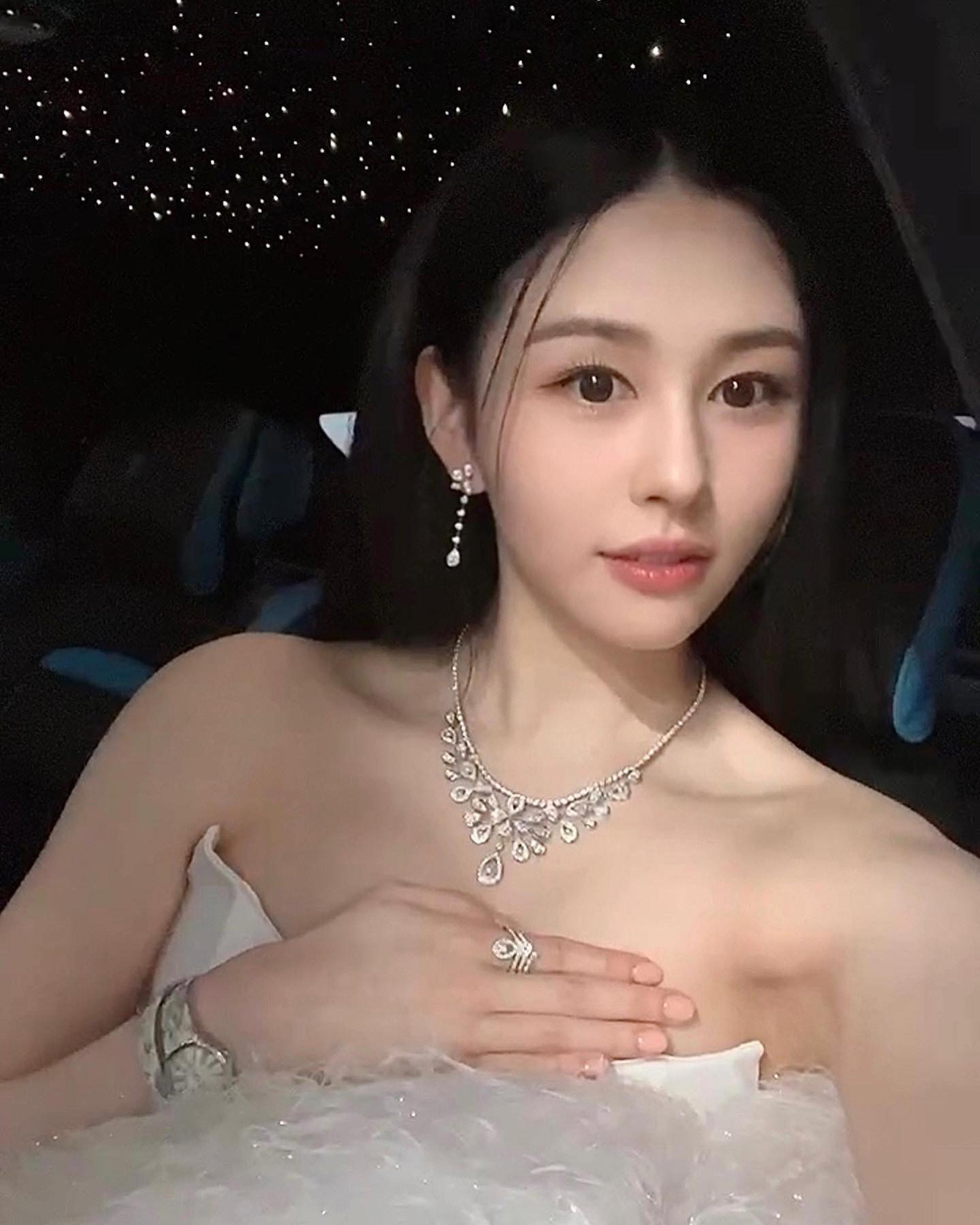 邱淑貞囡囡沈月盡得母親真傳,除了樣子長得跟邱淑貞如餅印外,就連驕人身材也遺傳了媽媽的優良基因。日前她到韓國出席晚宴,以一襲白色露肩晚裝示人,其豐滿上圍非常吸睛。她在社交平台分享多張照片,而自拍照因事業線太深長關係,她刻意用手掩蓋。