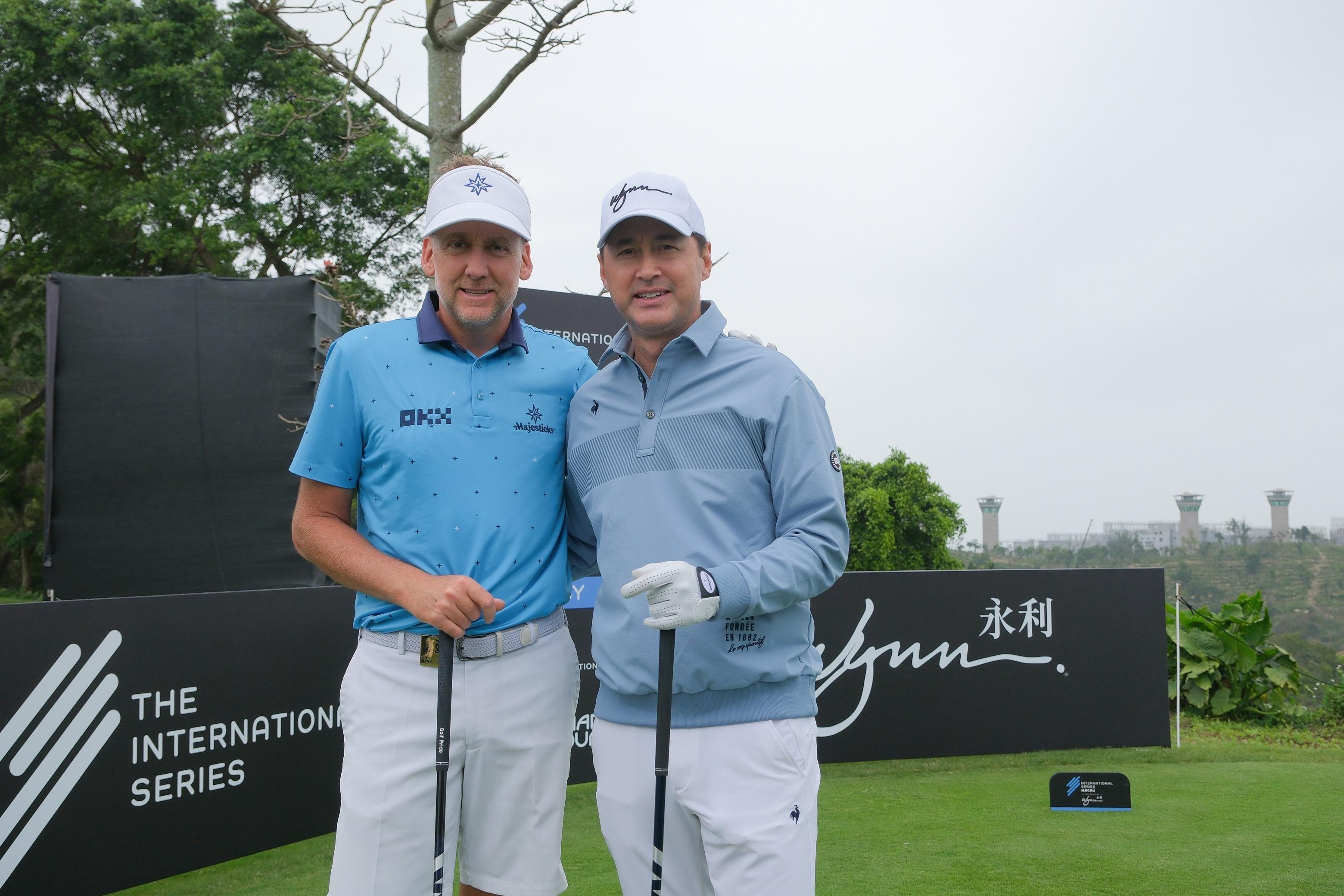 賽事中Michael與英國高爾夫球星伊恩.保爾特組隊。