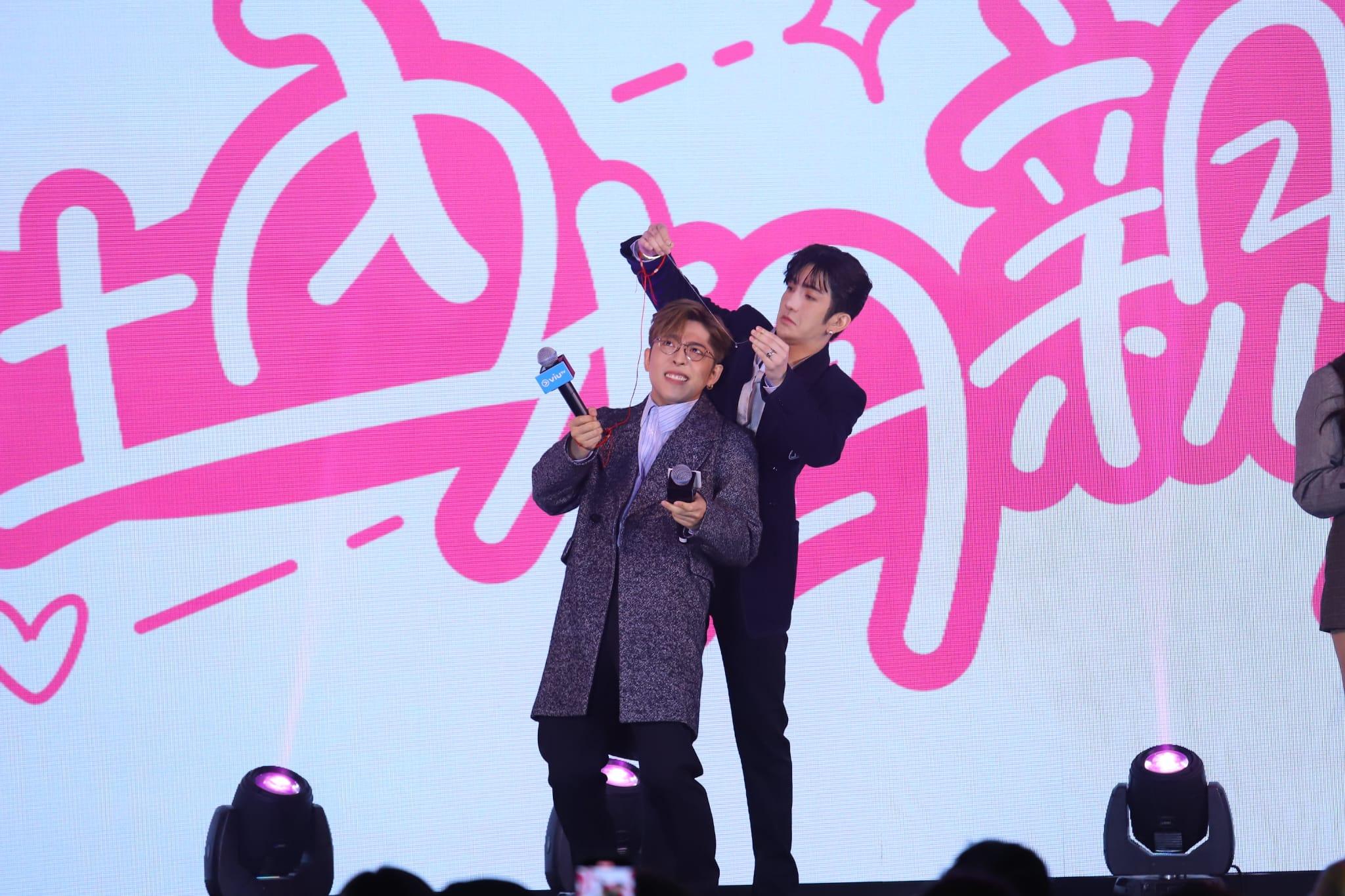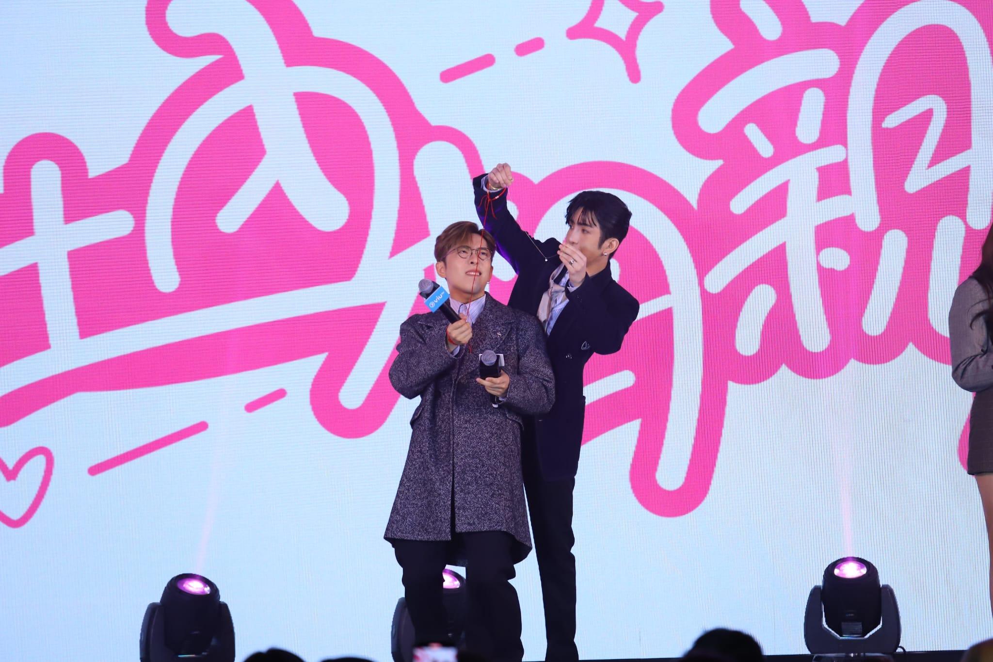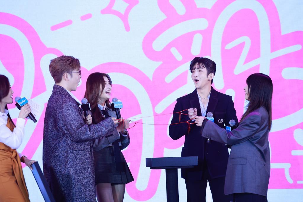 由盧瀚霆(Anson Lo)、吕爵安(Edam)、陳漢娜、沈殷怡、羅家英、盧覓雪、歐陽偉豪等合演的港版《社內相親》今日舉行記者會,眾演員介紹戲裡角色關係,其間Edan與Anson Lo為對方打呔及戴頸鏈,Shirley與Hanna亦互為對方對方打呔及戴頸鏈,並於粉絲大玩遊戲。