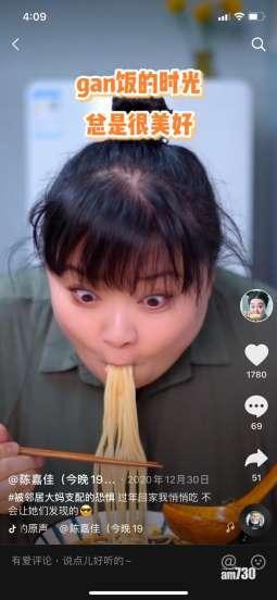 「細細粒」陳嘉佳近年轉攻大陸市場,並開設抖音帳戶成為美食帶貨達人,晚晚開Live和大家介紹美食。她在直播中吃過不停,成功為她的的抖音帳戶吸納42.2萬粉絲。