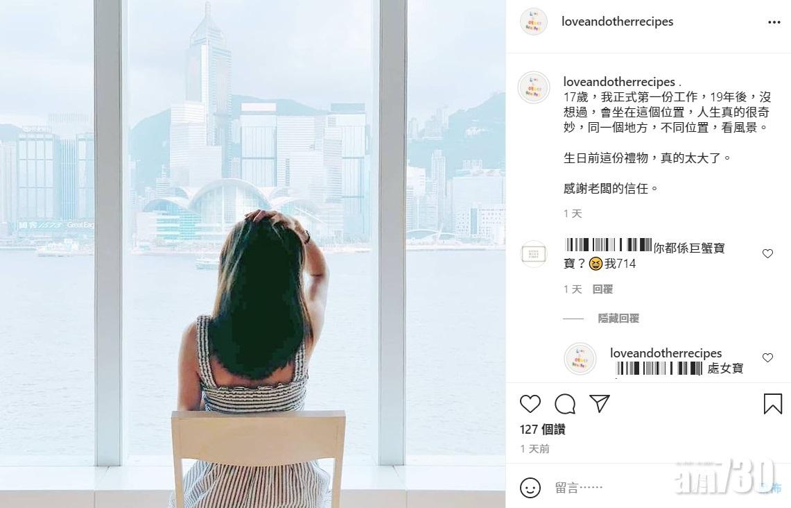 昨日她又透露自己正與哥哥物色店舖,並透露自己遇到「老闆」,令她把主觀放下,又大談自己在工作上如何作出決定。之後她再出po說︰「17歲,我正式第一份工作,19年後,沒想過,會坐在這個位置,人生真的很奇妙,同一個地方,不同位置,看風景。生日前這份禮物,真的太大了。感謝老闆的信任。」但練美施沒有透露這位「老闆」是誰。
