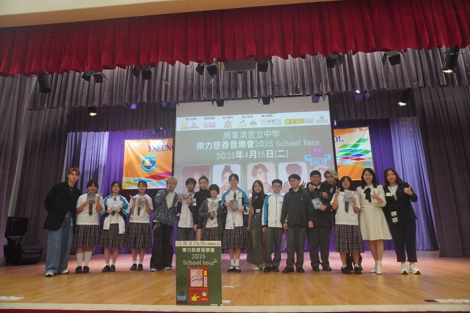 日前冼靖峰、文凱婷、Kakit、賴映彤 (Ahyana)、新世代歌手Tr33連同《未來科學拯救隊》系列作家梁添博士等到將軍澳官立中學出席第三場《樂力慈善音樂會2025 School Tour》。活動一開始由由他們向師生宣傳防騙資訊及提高大眾防騙意識,其後梁添博士為大家分享如何透過生成式AI成為科幻小說作家出版書。