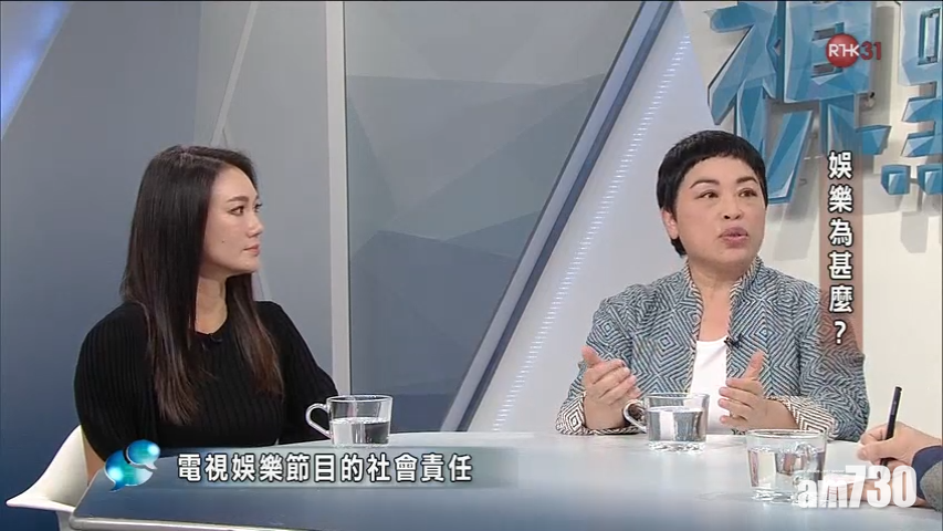 主持人就討論的問題作出簡述,之後玻璃朱搶先發言叫盧覓雪講先,雪雪認為娛樂節目有社會責任是多餘,如提供到娛樂吸引觀眾追看便已達到目的,若一定要政治正確、表態式,對某些事要歌功頌德便會適得其反。玻璃朱表示認同,但認為節目不能沒有底線及道德,並以她曾在youTube看過的影片作例子,指片段有小朋友以踢倒人為目的,有教壞其他人之嫌,認為節目必須要負上社會責任及有底線。雪雪認為按現時發牌機制已設下很多底線,若然電視台不跟足便會有嚴重後果。她提到以前看《歡樂今宵》時,指主持人在個別環節上會作出口頭警告,甚至有些節目會在較夜時間播放,認為「做晒體檢都唔得,就太過苛刻」。