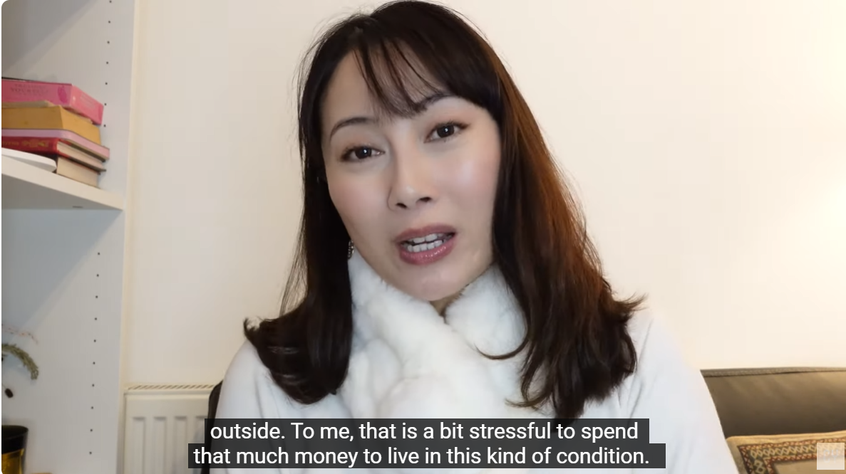 她又提到在英國出席不同派對時,大家都會盛裝打扮及配戴首飾,可惜治安問題,大家離場之後都會穿上大衣及隱藏首飾,她覺得這樣很無奈,因為自己很愛打扮,想靚靚的出街。她又提到在倫敦的生活指數很高,要付很多不同稅項,她稱自己不是很富有,因此在倫敦生活對她來說很吃力,自己更想過去日本生活。