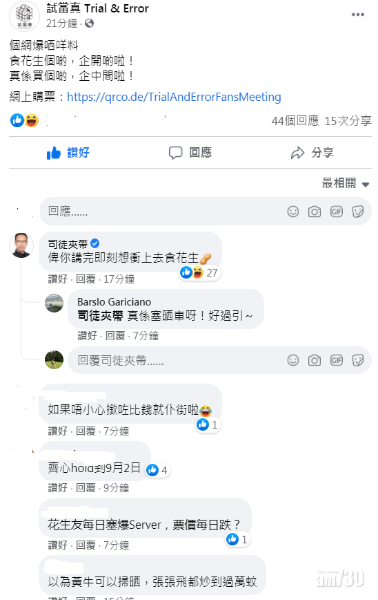 有網民直認無意買一萬元門票,純綷食花生。