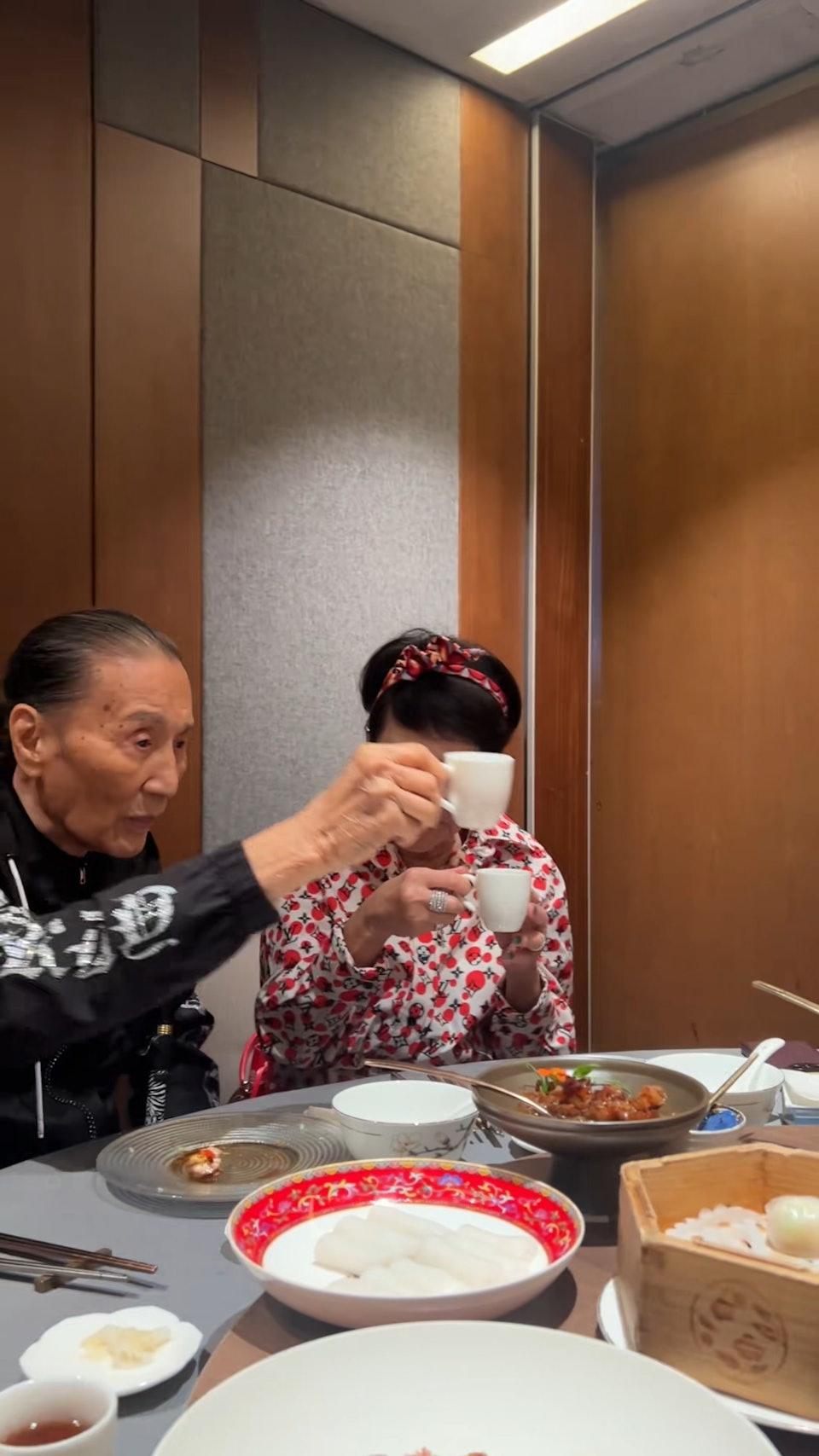 片中見到霆鋒介紹多款邵德龍師傅的招牌菜,拉姑亦都大快朵頤,最後見到霆鋒跟拉姑、四哥一齊碰杯,非常開心。不過,片中未見霆鋒兩個囝囝。四哥近年甚少露面,早前有網民在街上捕獲他,見到他需要坐輪椅出入。