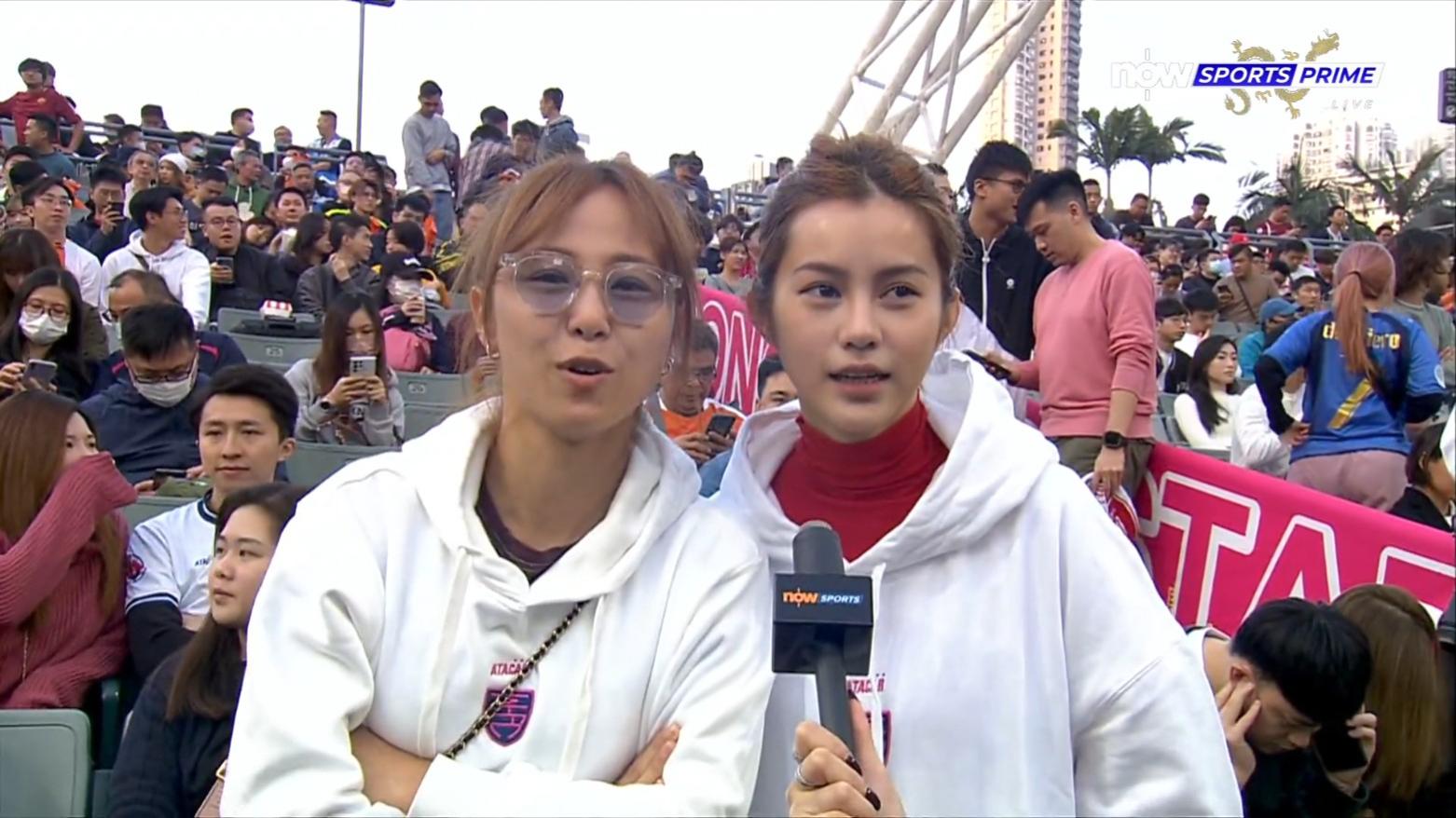 鄧月平與友人入場睇波,中場休息時接受Kylie C.鄭杞瑤訪問。
