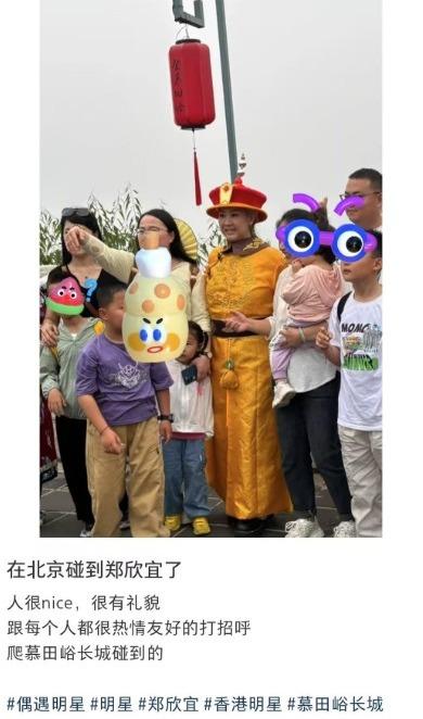今日(3日)有網民在社交網分享巧遇鄭欣宜現身北京現身慕田峪長城打卡留念。