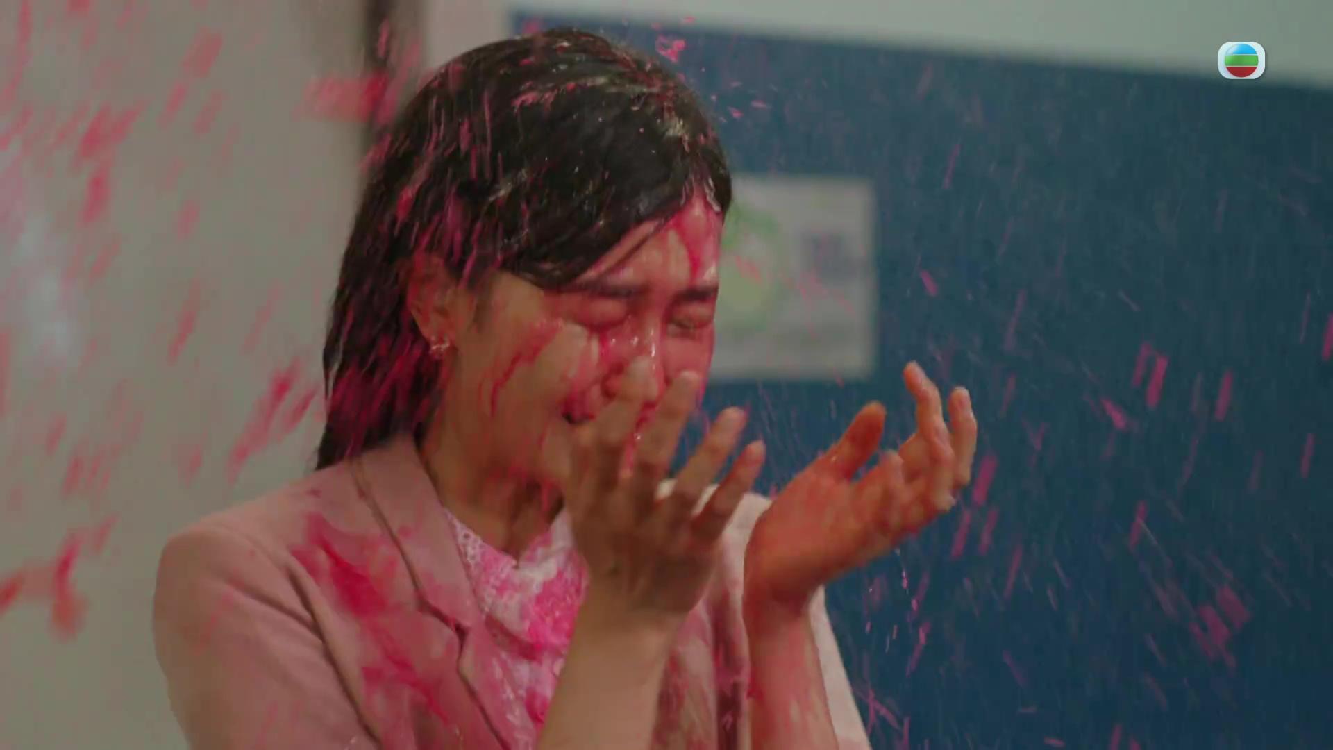 昨晚學禮找人淋林澄紅油、卻誤中副車淋到高靜(郭柏妍飾)一幕,原來拍攝時鬧出不少狀況。由於劇情講述學賢(羅天宇飾)中途殺出英雄救美,為增加天宇出場的Dramatic感,導演安排天宇以手肘擊退「一嘢飛埋嚟的鐵罐」;由於是貨真價實的鐵罐、加上飛埋身有一定衝力,對天宇來說絕對是眼力、忍痛力及敏捷度的考驗。由於場口還需要曉華、郭柏妍、子溢,甚至是鐵罐的配合,天宇前後至少吃了10次NG,其中一次更令曉華誤中頭獎、天宇自己也至少硬食了一下。更慘烈的是,其中兩Take分別因為子溢走錯位及郭柏妍無故傻笑,令天宇再度跌入「重拍地獄」。另一值得留意的是,郭柏妍被淋紅油時發出的聲音相當尖銳、直達海豚音Level,可以說是她入行四年以來最高音的一次!郭柏妍之前接受官方訪問時曾提及自己是首次飾演如此「吵耳」的角色,並謂擔心觀眾未必受落。