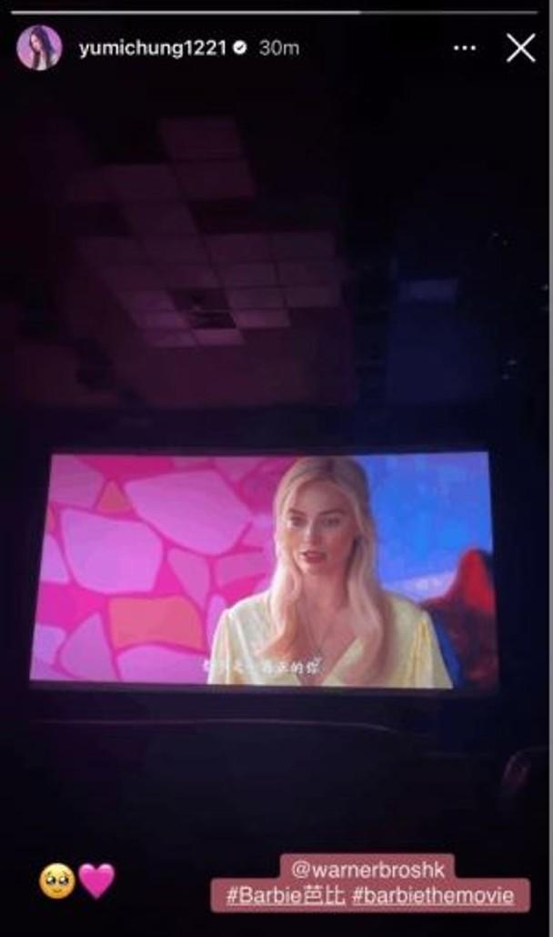 鍾柔美(Yumi)近日入戲院睇《Barbie芭比》,但在IG story上載電影畫面,由於戲院內嚴禁拍攝及錄影,Yumi此舉隨時觸犯有關條例,隨時面臨檢控。她的行徑惹來不少網民批評,她亦急急刪po並用英文發言道歉︰「My deeply apologise. Sorry﹗」
