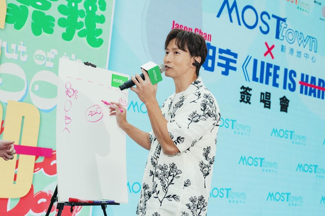 陳柏宇(Jason)上月推出專輯《LIFE IS HARD》,日前他現身馬鞍山舉行簽唱會,活動中Jason分享新專輯製作點滴,更即場演繹新歌,並壓軸公佈驚喜消息。 Jason唱出主打歌《唞》為活動揭開序幕,回顧2024年,Jason表示:「今年好充實,除咗先後推咗多首歌曲,早前仲喺澳門舉行演唱會。」