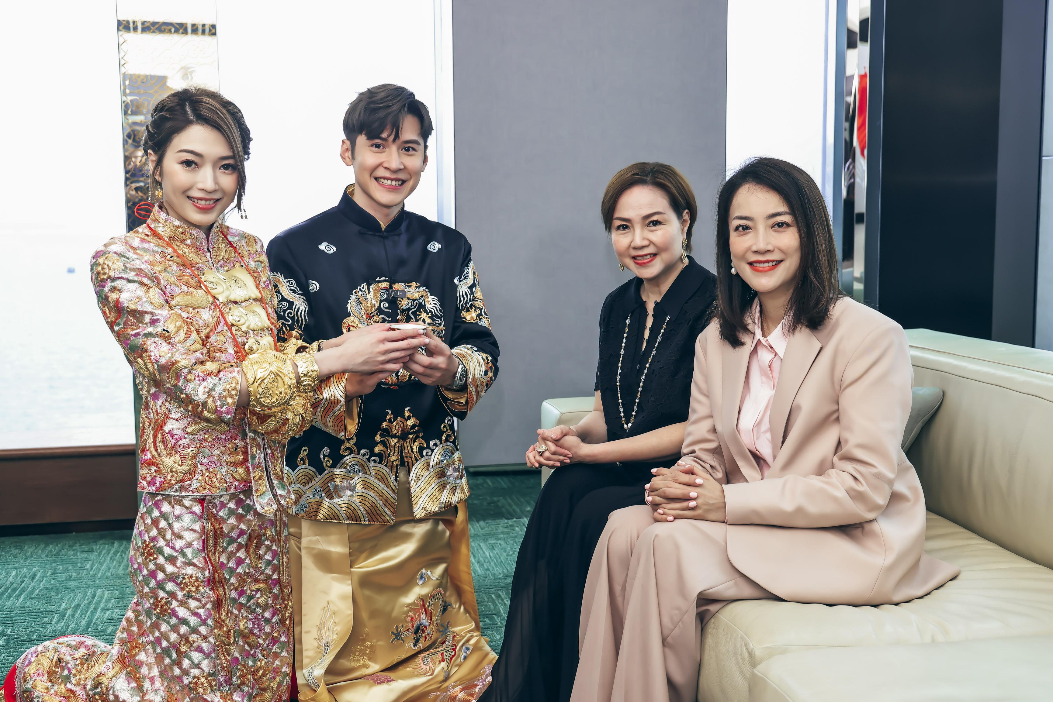 陳家樂與連詩雅向英皇集團老闆楊受成斟茶,以示敬意。