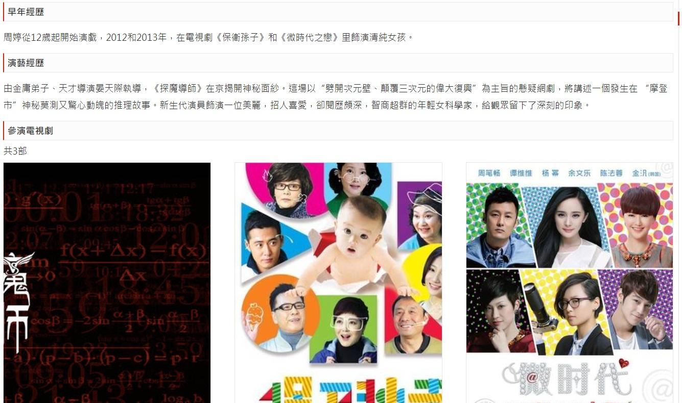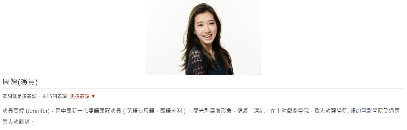 另外,周婷過去曾參演過幕前演出,其中一部作品是與余文樂、楊冪合作的《微時代之戀》。大陸媒體曾報道周婷的背景,稱她是中國新一代雙語國際演員,擁有陽光型混血形象,健康又清純,並曾於上海戲劇學院、香港演藝學院及紐約電影學院接受過專業訓練。她參選亞姐同年拍攝電影《探魔導師》,大陸媒體稱她在戲中擔任重要角色,飾演一位美麗、討人喜愛、智商超高的女科學家。