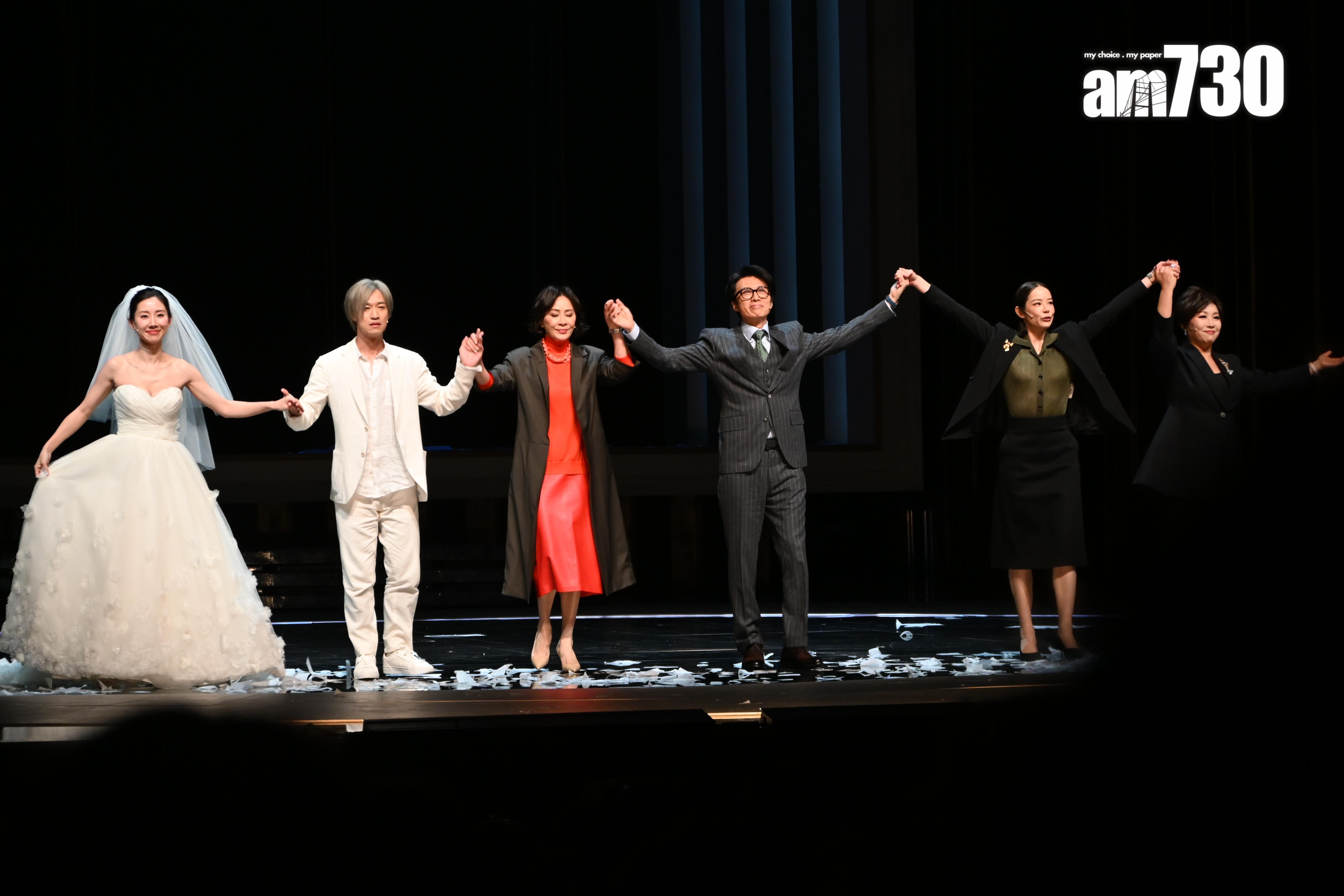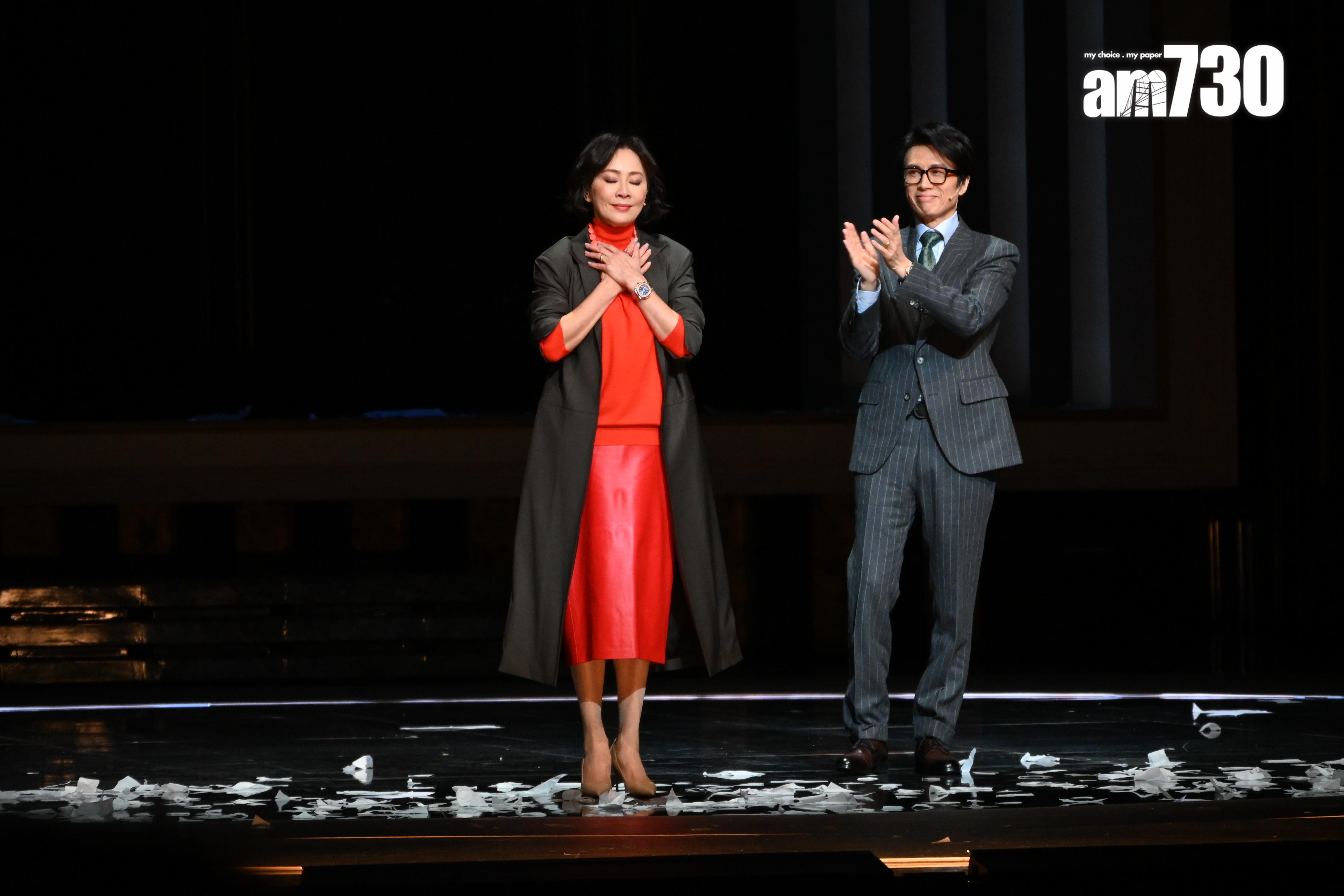 由黃子華、劉嘉玲首度合作的《香港式離婚》昨日公演,多位藝人到場支持,包括狄波拉、修哥胡楓、陳志雲、金燕玲、蘇施黃、張智霖、袁詠儀、蔡一智、古巨基、張繼聰、謝安琪、伍富橋夫婦等,霍啟剛與郭晶晶在完場時更走到拍照攤位影相。