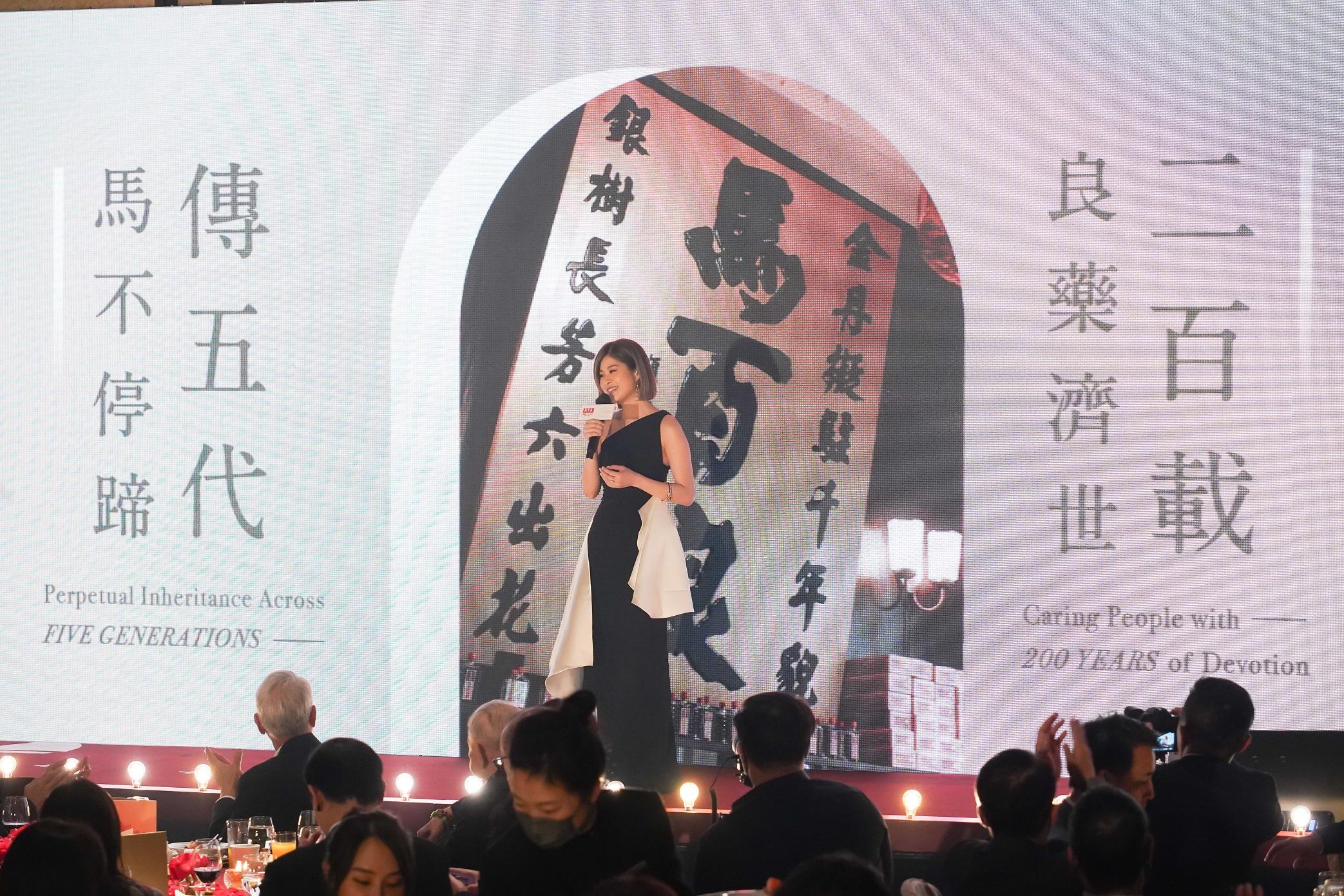 《馬百良葯廠200周年晚宴》現場,展出珍藏過百年的葯廠文物級展品,現場布置恍如置身博物館。現場更眾星與社會名流雲集,晚宴由麥美恩、陸浩明任晚宴司儀。對於各方來賓出席,馬浩樺先生說:「因為疫情原故,有幾年時間沒有與各界朋友見面,適逢今晚馬百良200周年,可以和大家聚首一堂,特別覺得有義意和開心,多謝來臨的朋友,藉著今次機會,祝願廣大市民,身體健康。」