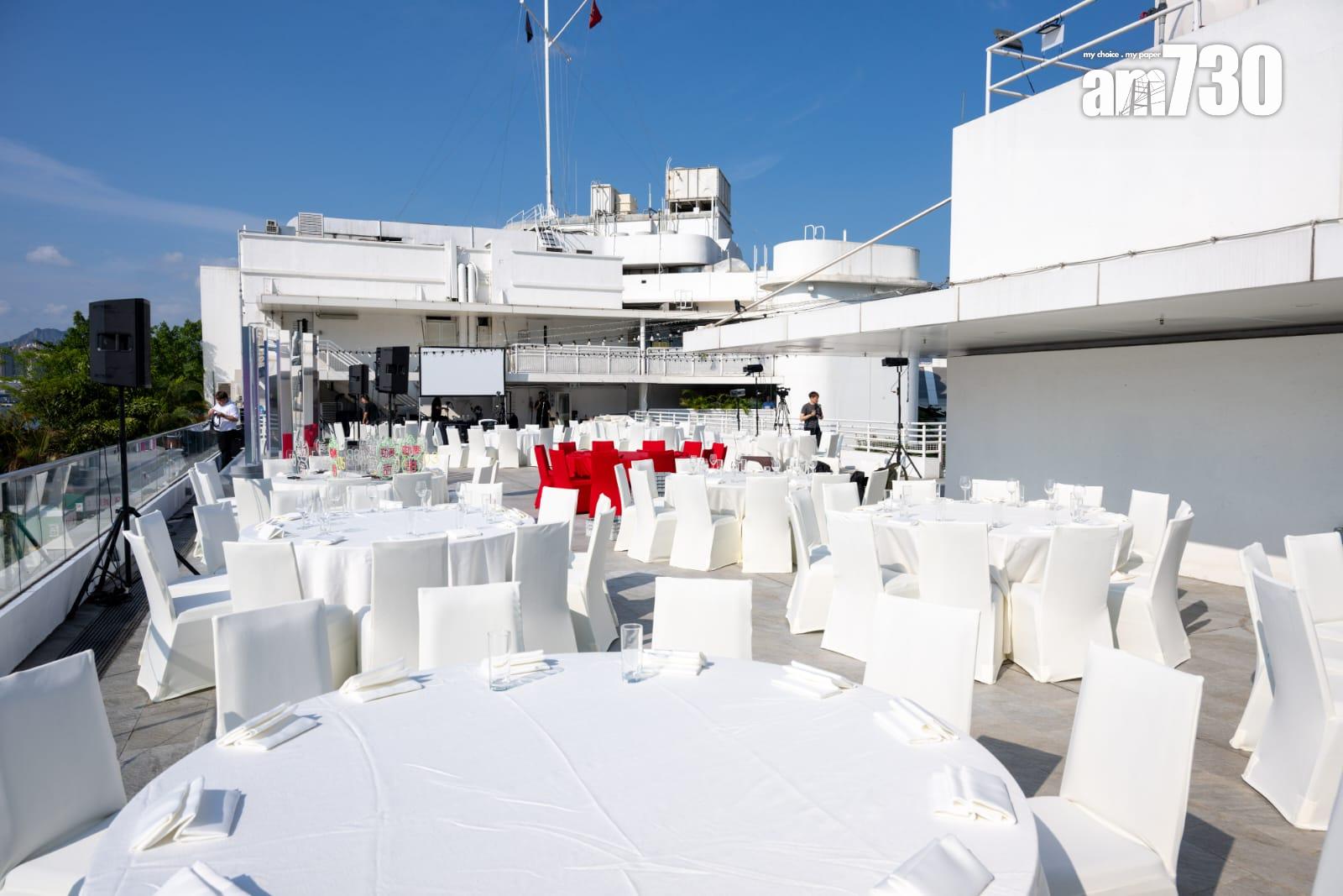 麥明詩與盛勁為的婚禮大搞3場,昨日(23日)在元朗舉行盆菜婚宴,更請到李龍基和林景程表演助慶。今日移師到銅鑼灣吉列島遊艇會舉行,會場大玩港式情懷,見到有懷舊小食攤檔,掛滿了80、90後的童年零食及玩物,當中包括西瓜波和紅白足球等。