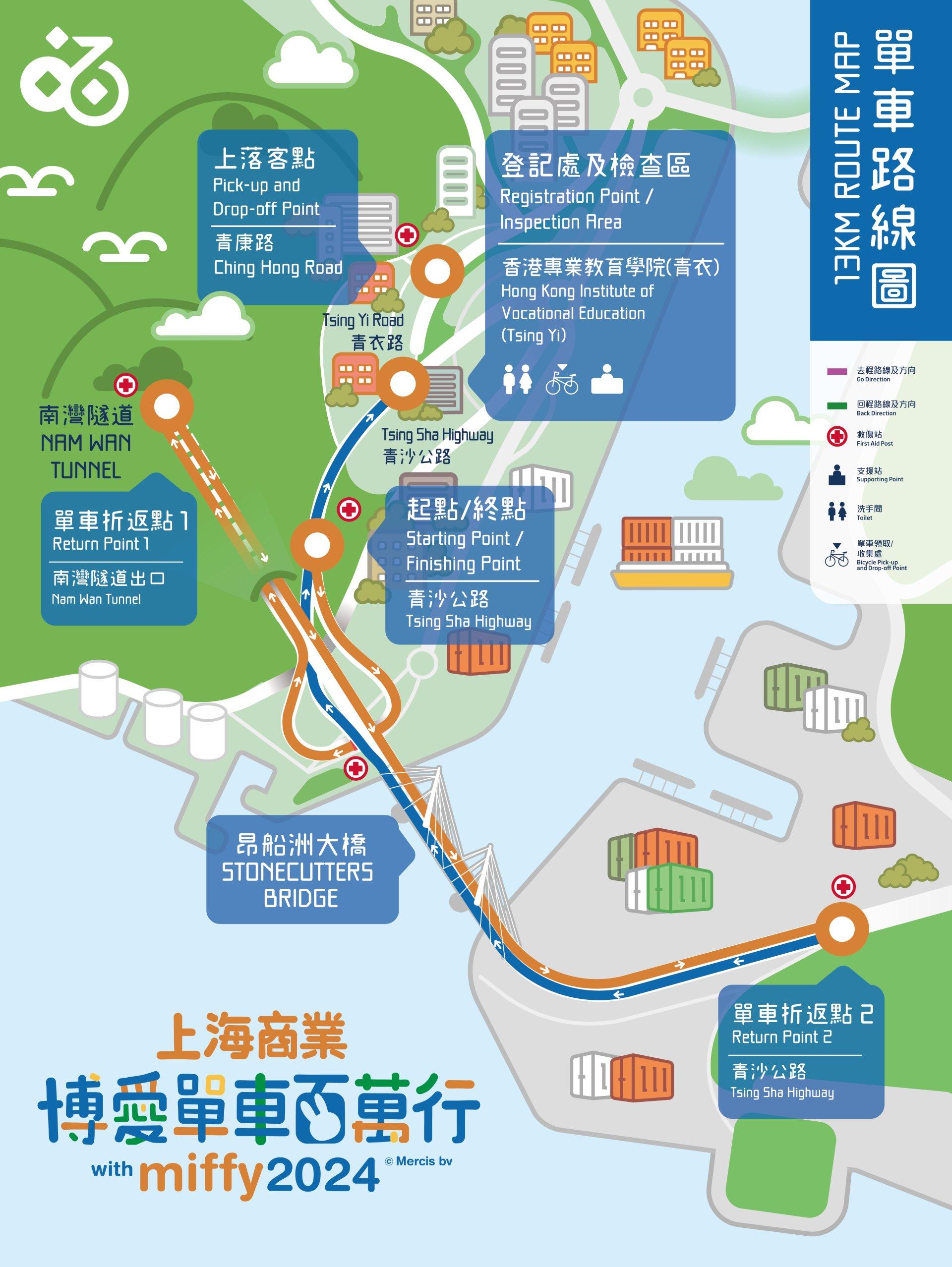 今年活動將沿用一向大受歡迎的路線:由青沙公路出發前往昂船洲大橋,途經南灣隧道,全程約13公里,飽覽昂船洲大橋、藍巴勒海峽及維港的優美景色,與家人及朋友一同享受天倫之樂。活動由即日起已經接受報名,參加者可分別報名個人或企業與團體組別,報名25/2/2024截止,最後機會、機不可失!