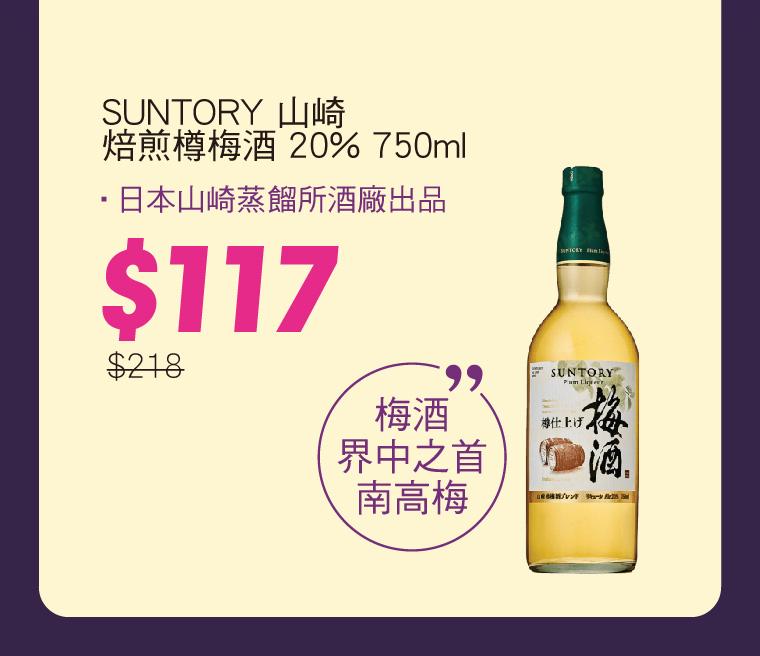 使用梅酒界中之首南高梅,以山崎蒸餾所之釀製過威士忌木桶來貯藏,口感因白蘭地的花香及葡萄蜜糖香氣而更加豐富