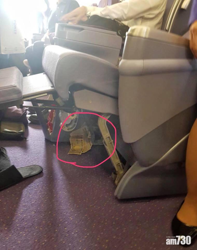 坐飛機時貴重物品跟身是常識吧,即使是商務艙也不可掉以輕心。3名泰國遊客日前坐泰國航空客機往日本時,於商務艙內被偷去79萬日圓(約5.67萬港元)。其中一名女事主稱,其手袋裡有64萬日圓,並放於座位上方的行李櫃內,途中她睡著了,之後醒來發覺手袋裡現金不翼而飛,商務艙另兩名搭客也發現被偷錢,遂通知空中服務員。客機飛抵日本後,警員上機調查,在該女事主隔離的座椅下發現一疊日圓鈔票(圖紅圈),而該名鄰座男乘客好像是中國人,但未能證實。在Facebook發放此消息的網主稱,其他乘客發現該男乘客在機艙裡走動了好幾次,並將之告知登機調查的警員,才可那麼快破案。