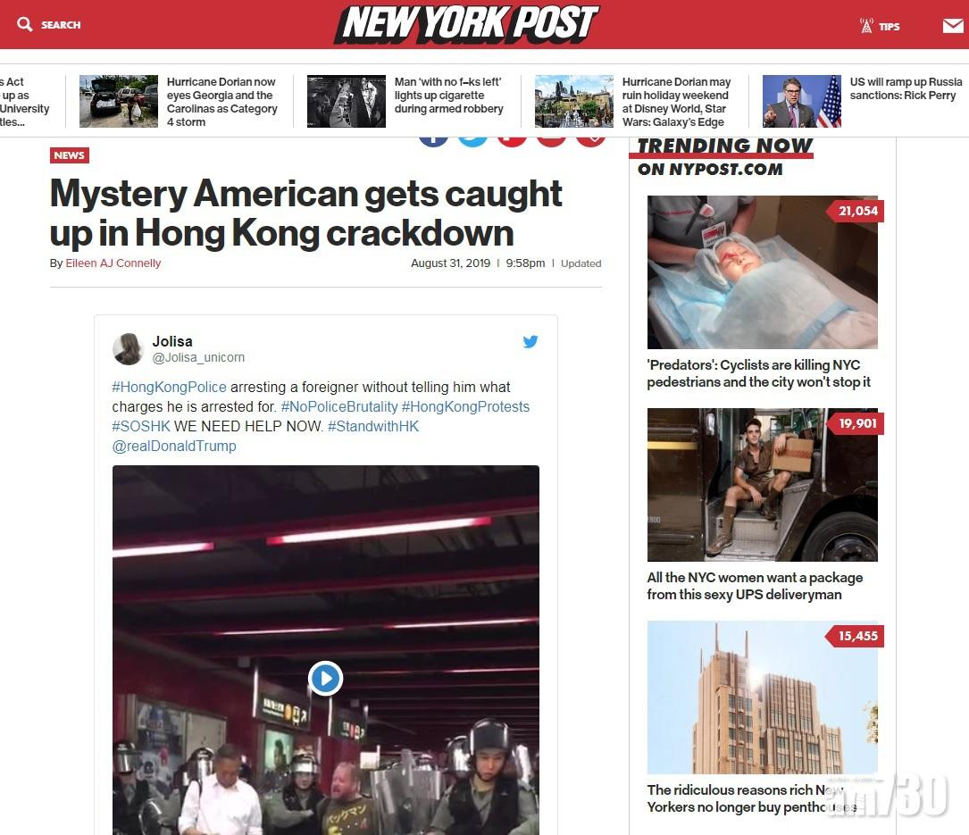 一名外籍男子昨日在港鐵荔景站被防暴警察拘捕,片段在社交網瘋傳,美國《紐約郵報》關注到該名男子似說美國口音,但未清楚其身份。