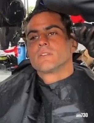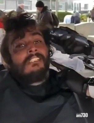 理髮師替他整理好儀容後,他再次露出自信的笑容。(互聯網)