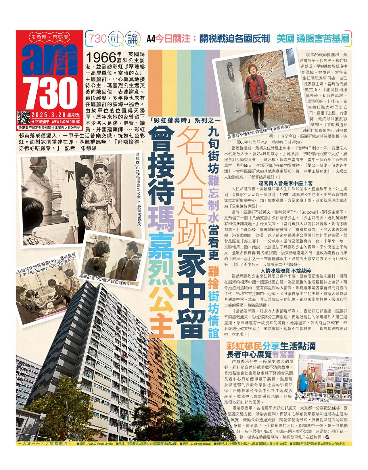 1966年,英國瑪嘉烈公主訪港,並到訪彩虹邨翠瓊樓一高層單位。當時的女戶主區麗群,小心翼翼地接待公主;瑪嘉烈公主返英後向她回信,表達謝意。這段經歷,多年後也未有在區麗群的腦海中褪色。由於單位的位置得天獨厚,歷年來她的家曾留下不少名人足跡,港督、議員、外國建築師……彩虹邨甫落成便遷入,一甲子生活苦樂交織,恍如七色彩虹。面對家園重建在即,區麗群感嘆:「好唔捨得,亦都好唔願意。」
