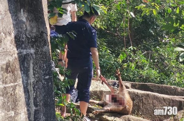 一隻被斬首及劏肚的野豬,今早被發現棄於香港仔黃竹坑道一處溪澗,旁邊有一把刀,警方經調查後拘捕一名男子,他涉嫌殘酷對待動物。
