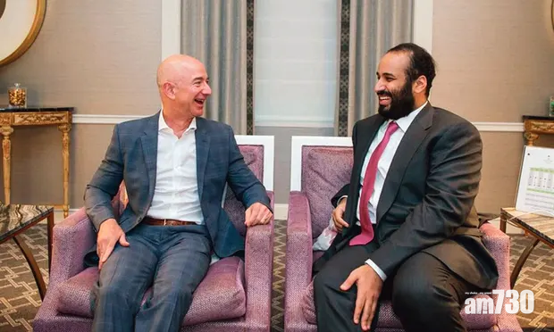 有指沙特王儲穆罕默德(右)之前有意邀請貝佐斯到沙特投資,遂與對方建立友好關係。(互聯網)