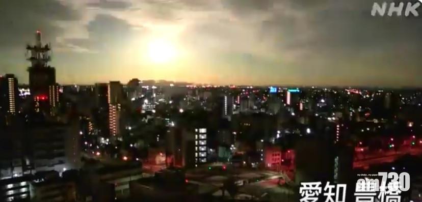 NHK報道,流星類中特別明亮的火流星,日本時間凌晨1時34分在西部廣泛地區被觀測到。NHK架設在三重縣和愛知縣等地的攝影機,捕捉到火流星從出現到落下,最後在空中產生巨大火球的畫面。