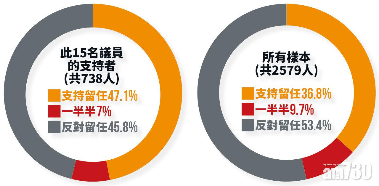 中大政治與行政學系高級講師蔡子強說,由於民主派支持者對去留的民意差距很少,預期留任議員的行為會轉趨激烈,與政府及建制派處於對抗關係,以證明留任後並無出賣支持者。至於民主派3名議員不留任,他認為確會令民主派在議會的力量變小,但他指民主派在議會內已非票數與建制派的差距問題,而是如何透過不同策略、議會常規及其他方法,與政府及建制派對抗。