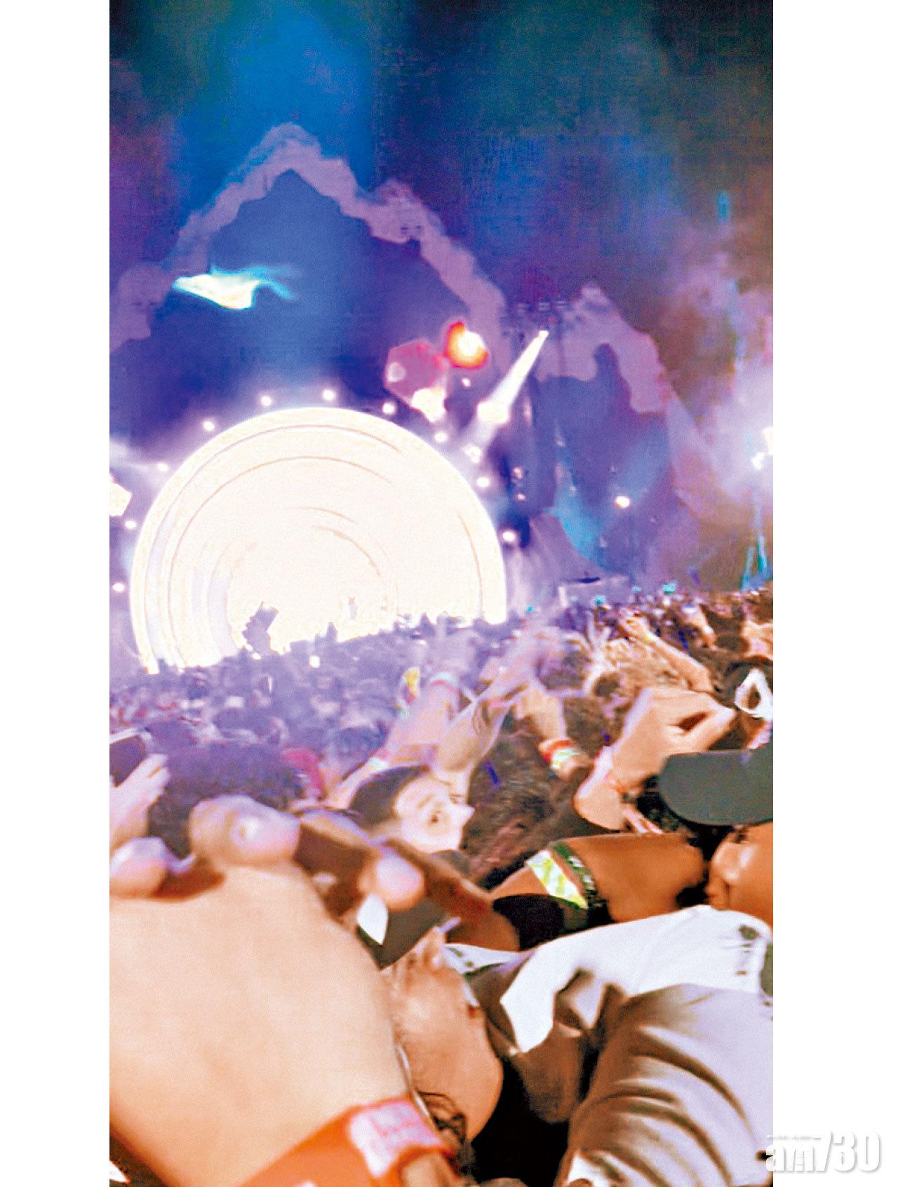 有指Travis Scott一出場,觀眾湧往台前。 (美聯社)