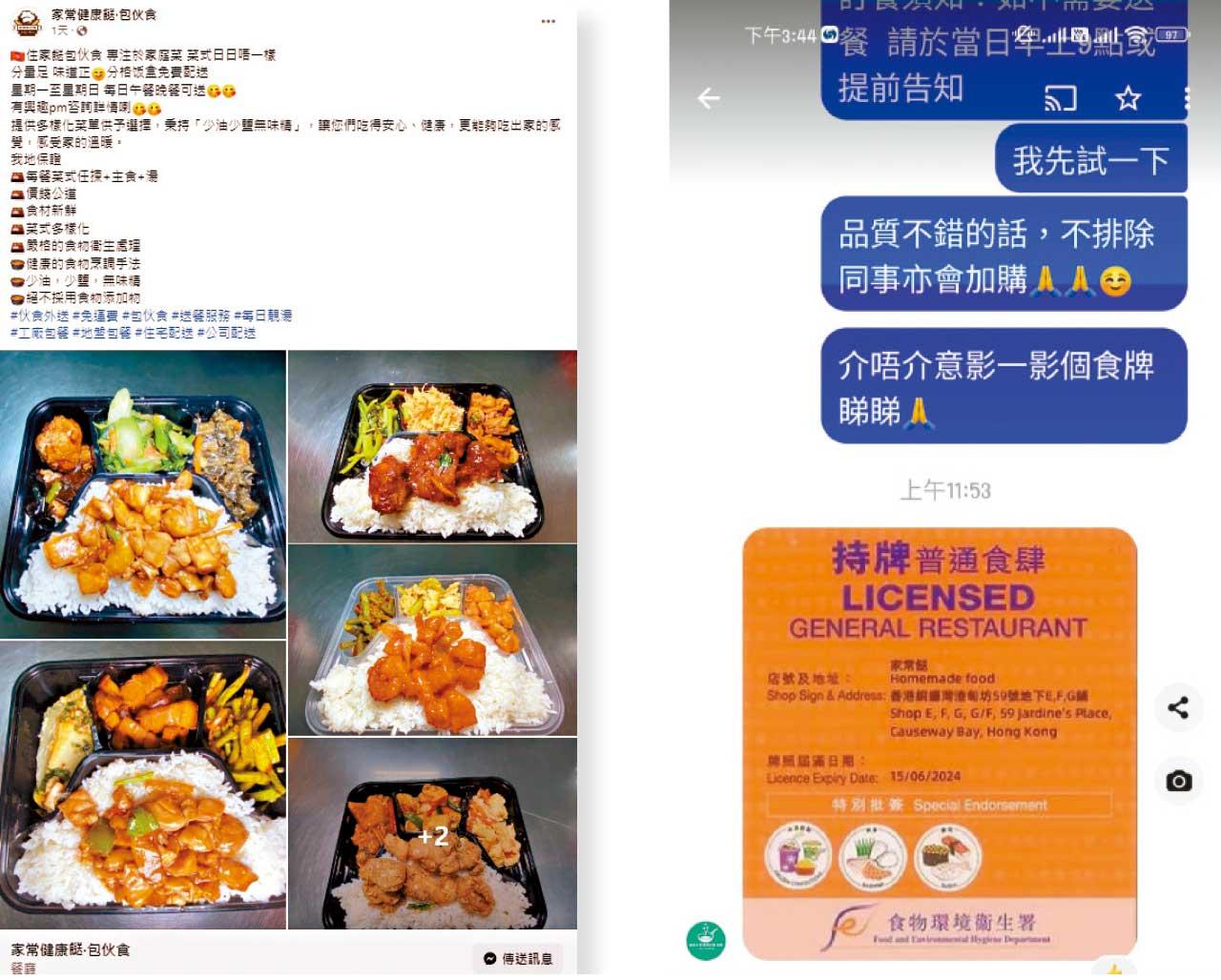 盆菜騙案變種!有打工仔在堪稱晚市荒漠地區工作,想兩餐食得較「多元化」,卻慘墮騙徒陷阱。本報發現社交平台Facebook上存有不少疑似假「包伙食」專頁,當中有以提供少油鹽、無味精的飯盒作招徠,送餐服務更是周一至日,朝十晚十自定時間送達指定位置;但市民過數預交「飯錢」後便隨即被封鎖!有苦主表示,騙徒會出示自製食物牌照增加可信度,並有問有答「用心」解釋如何落單及取餐細節,以博取信任;受害人最終被騙1,300元。 圖、文:李朗僑