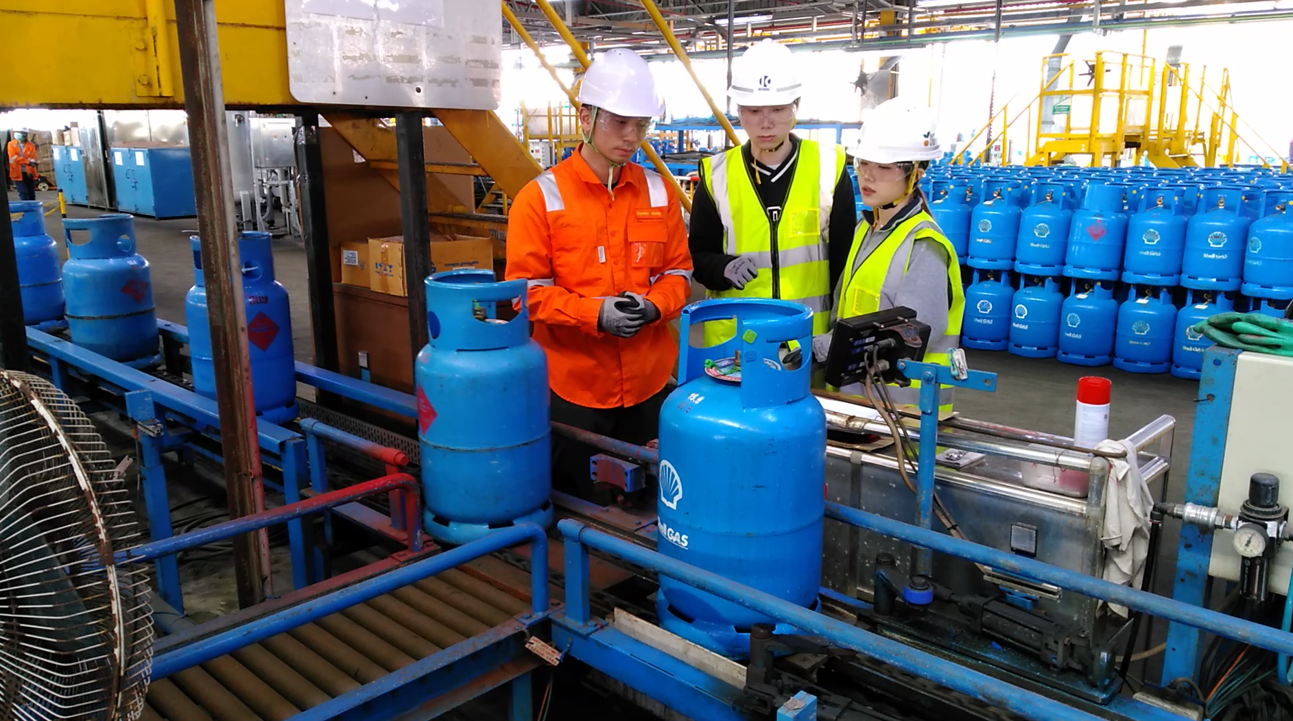 KaiKai和Mos聽從Hayden講解,了解石油氣的充氣流程。