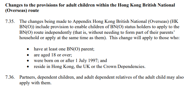 根據英國內政部資料,相關BNO簽證申請人,必須是年滿18歲且持有BNO資格人士、持BNO資格人士在1997年7月1日或之後出生的子女,以及在香港、英國或英國皇家屬地居住。