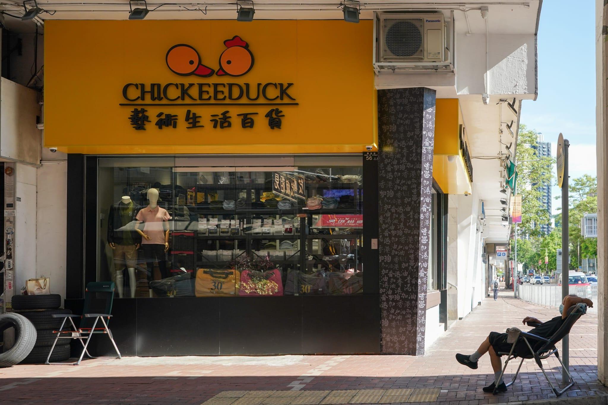 Chickeeduck童裝店全線結業後,目前尚餘3家「藝術生活百貨」,分別在銅鑼灣、天后和荃灣。其天后分店於去年11月,曾被市民投訴在街上涉嫌違法擺放物件,包括劉曉波銅像,引來警方及地政總署等部門到場跟進。而其他分店也曾擺放「民主女神像」遭警員搜查。
