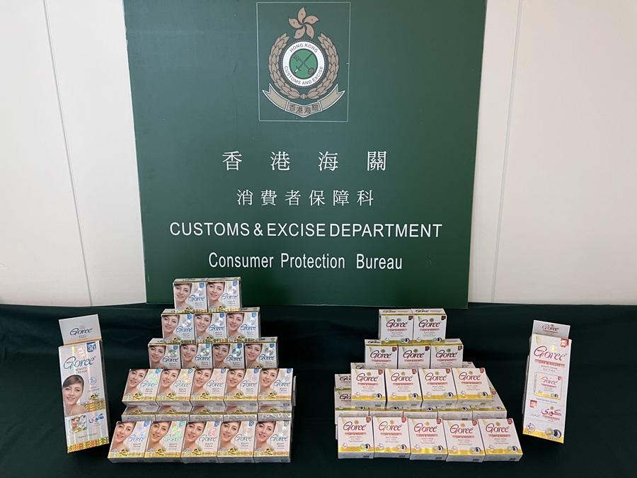 圖示海關人員於一間中環零售店舖檢獲的該兩款美白潤膚霜。(政府新聞處圖)