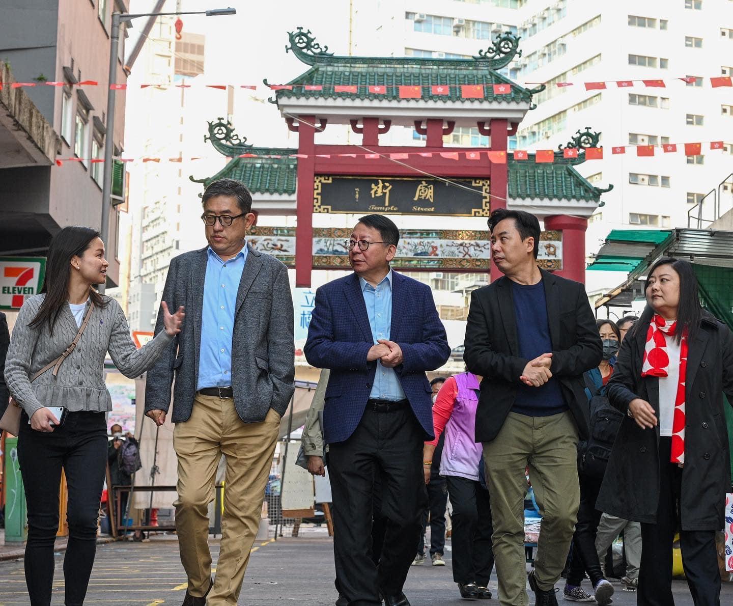 長假期前夕,司長仲同埋與旅發局總幹事程鼎一、港九新界販商社團聯合會主席陳錦榮「齊齊行」廟街。佢話,攤檔商戶非常之滿意今次安排,仲話生意額多過之前好多添!