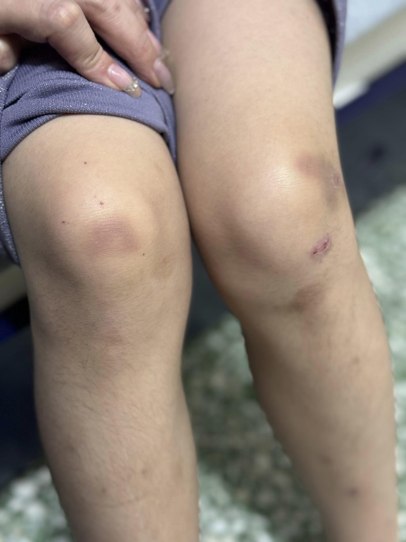 昨日(4日)晚上一名自稱為女童家長的人士於網上社交平台上載9張傷勢圖片,顯示女童額頭及右面頰有瘀青,牙齒及上唇亦受損,手臂、雙膝及盆骨位置仍遺有瘀傷及擦傷,並撰文表示「我知道有好多人關心小妹妹嘅近況同埋傷勢。多謝大家關心。」