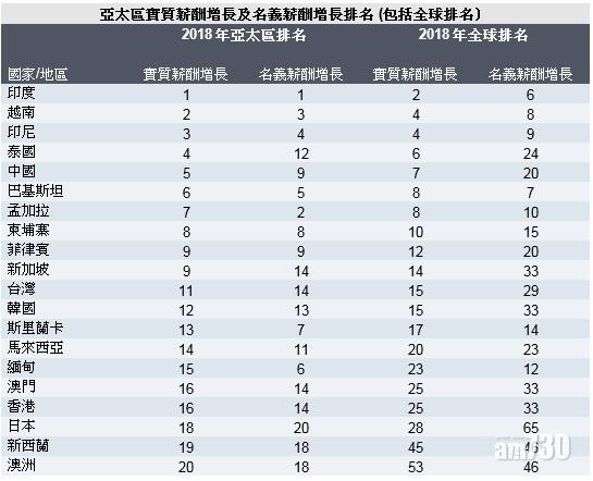 印度在2018年的實質薪酬增長預計將高達4.9%,續佔亞太區內榜首。除印度外,全球十大實質薪酬增長最高的地區,還包括與印度位處同一次大陸的巴基斯坦和孟加拉;而東盟成員國越南、印尼、泰國、中國和柬埔寨分佔二至五及第八位。新加坡在2018年的實質薪酬增幅為2.7%,再次領先香港,在區內20個受訪地區之中排名第九。