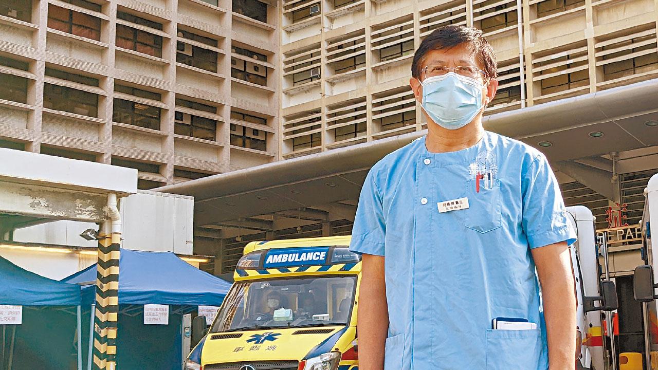本港在第五波疫情高峰期,公立醫院病房一度不敷應用,很多人對病人滯留急症室外的畫面歷歷在目。負責帶領伊利沙伯醫院轉為定點醫院急症室顧問醫生何曉輝,重提當日淚灑員工大會一事時,直言出現情緒並非因有壓力,而是心痛病人得不到應有的治療。在該院工作36年的他又稱,不認為醫療系統在第五波崩潰,反而認為2003年爆發的非典型肺炎(沙士,SARS)充斥著未知、有醫護人員染疫亡,覺得當年的挑戰比現時更大。
