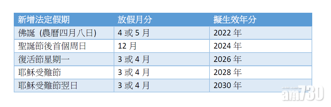 立法會今日三讀通過《2021年僱傭(修訂)條例草案》,將逐步增加法定假期至17天,看齊公眾假期日數,於明年起每兩年加入一天假期,明年佛誕將成為法定假期,至2030年將完成修訂。