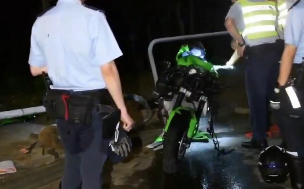 元朗男子駕電單車載弟失控撞鐵欄,兄死弟傷。(電視截圖)