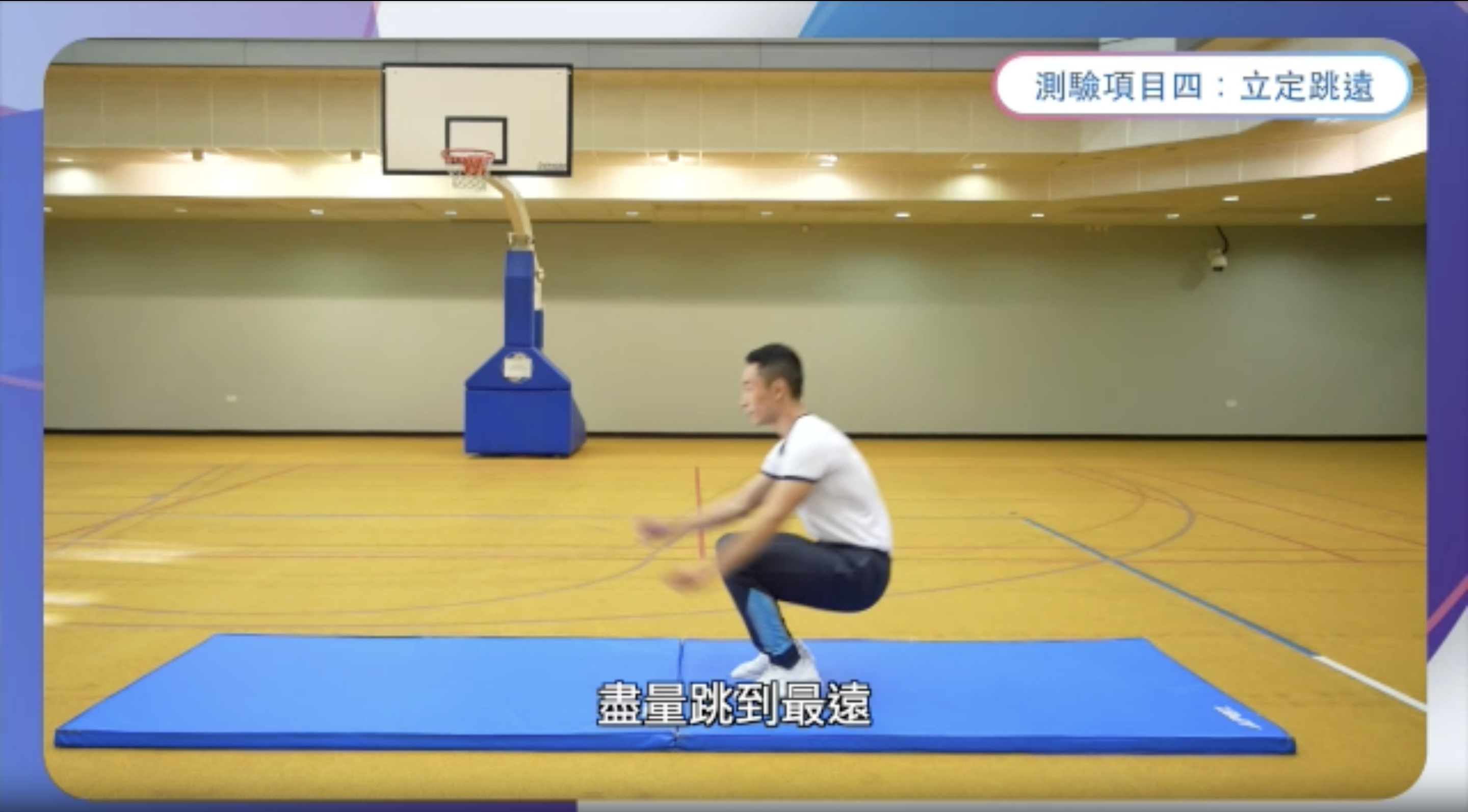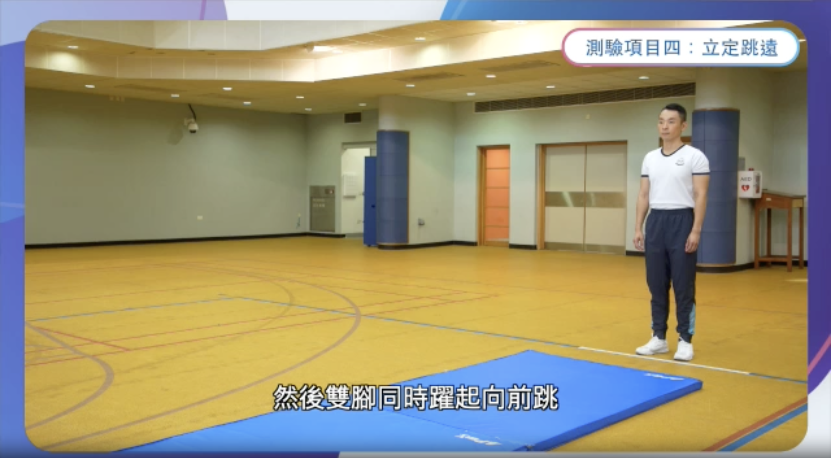 考生需站在軟墊的起跳線前,之後雙腳同時向前起跳,盡量跳到最遠的位置。雙腳落地後要保持立正姿勢,靜候監考員量度 。成績會以起跳線與考生落地點的最短距離來計算。考生最少要跳到144.5厘米,方得一分。