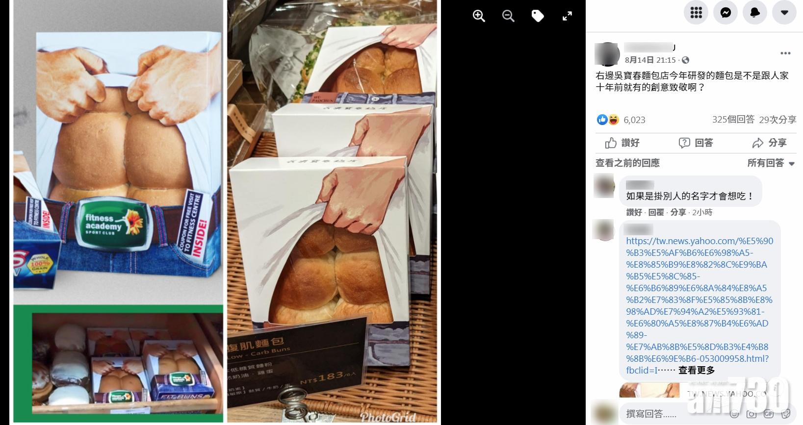 多個社交平台近日都遭到一款創意滿分的「腹肌麵包」洗版,令不少網民都對這款麵包垂涎不已。不過,有台灣網民上周六在「爆料公社(官方粉專專屬)」Facebook群組貼出對比圖,問「右邊吳寶春麵包店今年研發的麵包是不是跟人家十年前就有的創意致敬啊?」